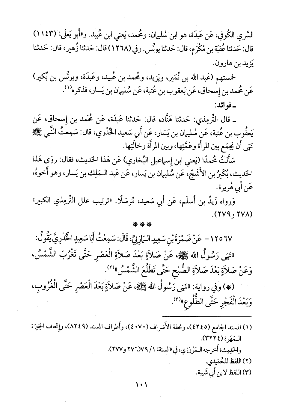 - وفي رواية: «إن النبي صَلى الله عَليه وسَلم نهى عن الصلاة بعد العصر، وبعد الصبح» (¬٣).