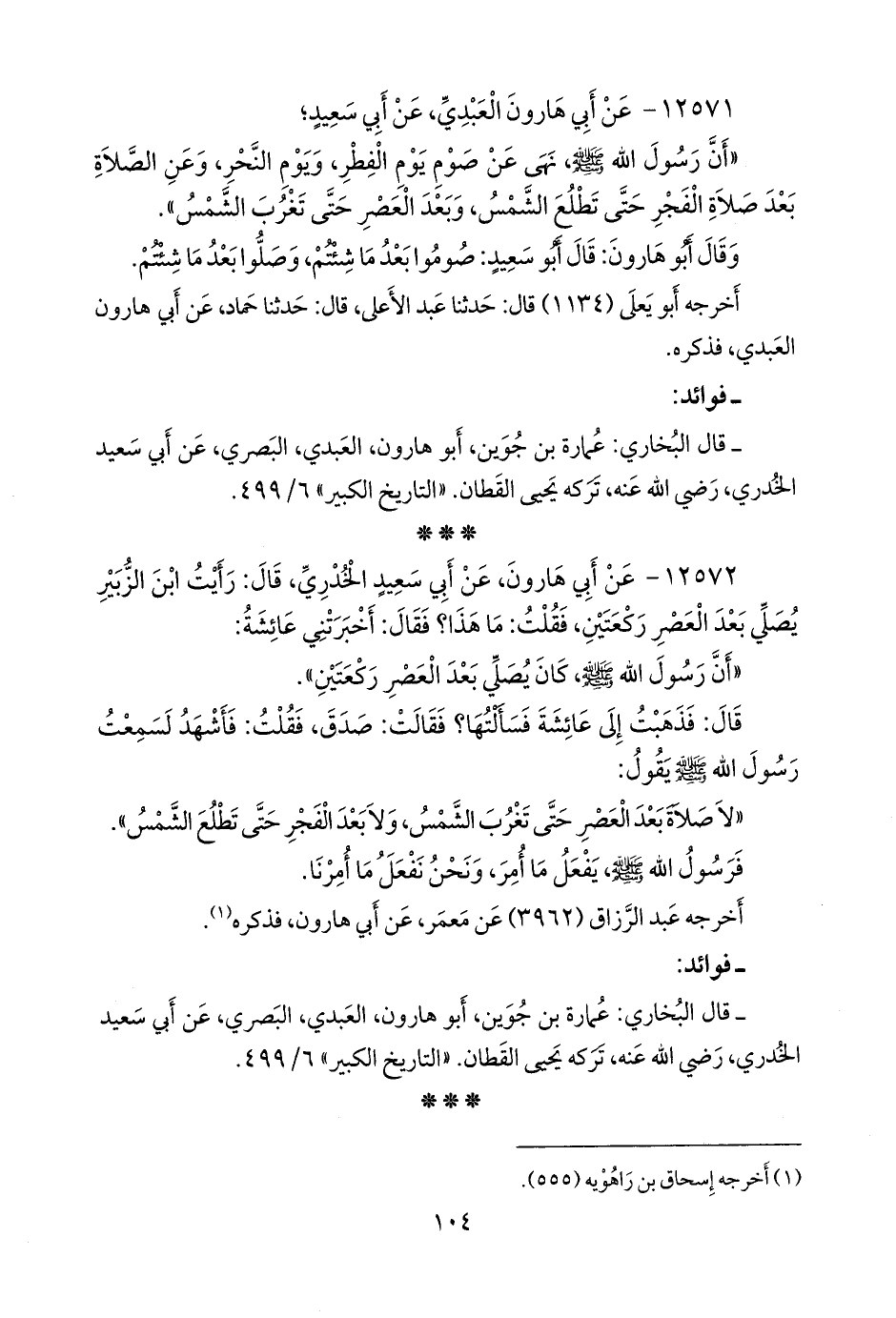 ١٢٥٧٢ - عن أبي هارون، عن أبي سعيد الخُدْري، قال: رأيت ابن الزبير يصلي بعد العصر ركعتين، فقلت: ما هذا؟ فقال: أخبرتني عائشة: