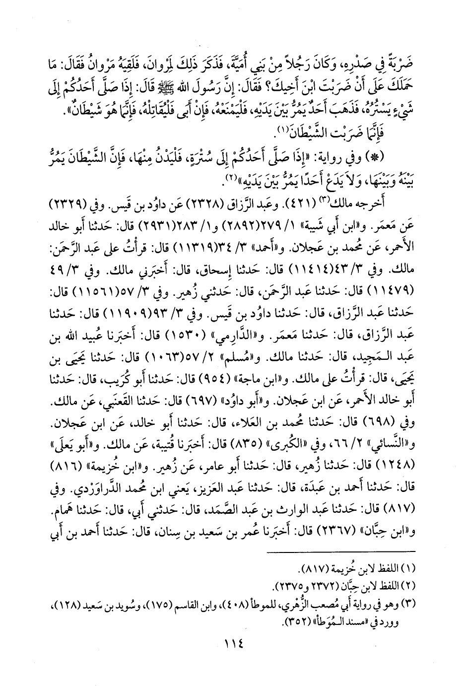 بكر، عن مالك. وفي (٢٣٦٨) قال: أخبرنا الحسين بن إدريس الأَنصاري، قال: أخبرنا أحمد بن أَبي بكر، عن مالك. وفي (٢٣٧٢ و ٢٣٧٥) قال: أخبرنا أحمد بن علي بن المثنى، قال: حدثنا محمد بن عبد الله بن نُمير، قال: حدثنا أَبو خالد الأحمر، عن ابن عَجلان.