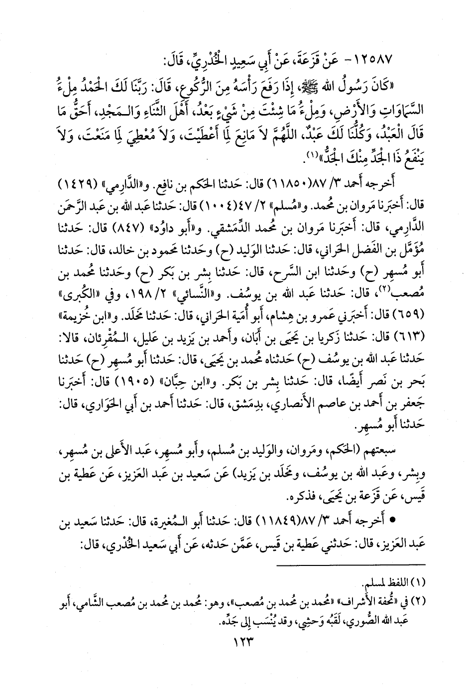 • أخرجه أحمد (١١٨٤٩) قال: حدثنا أَبو المغيرة، قال: حدثنا سعيد بن عبد العزيز، قال: حدثني عطية بن قيس، عَمَّن حدثه، عن أبي سعيد الخُدْري، قال: