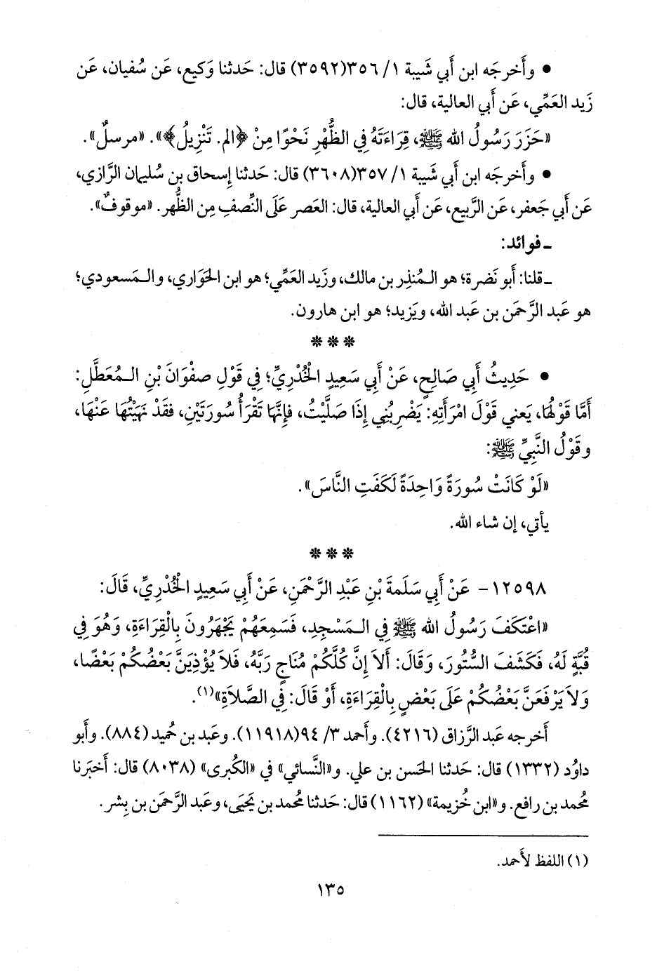 أخرجه عبد الرزاق (٤٢١٦). وأحمد (١١٩١٨). وعَبد بن حُميد (٨٨٤). وأَبو داود (١٣٣٢) قال: حدثنا الحسن بن علي. و «النَّسَائي» في «الكبرى» (٨٠٣٨) قال: أخبرنا محمد بن رافع. و «ابن خزيمة» (١١٦٢) قال: حدثنا محمد بن يحيى، وعبد الرَّحمَن بن بشر.
