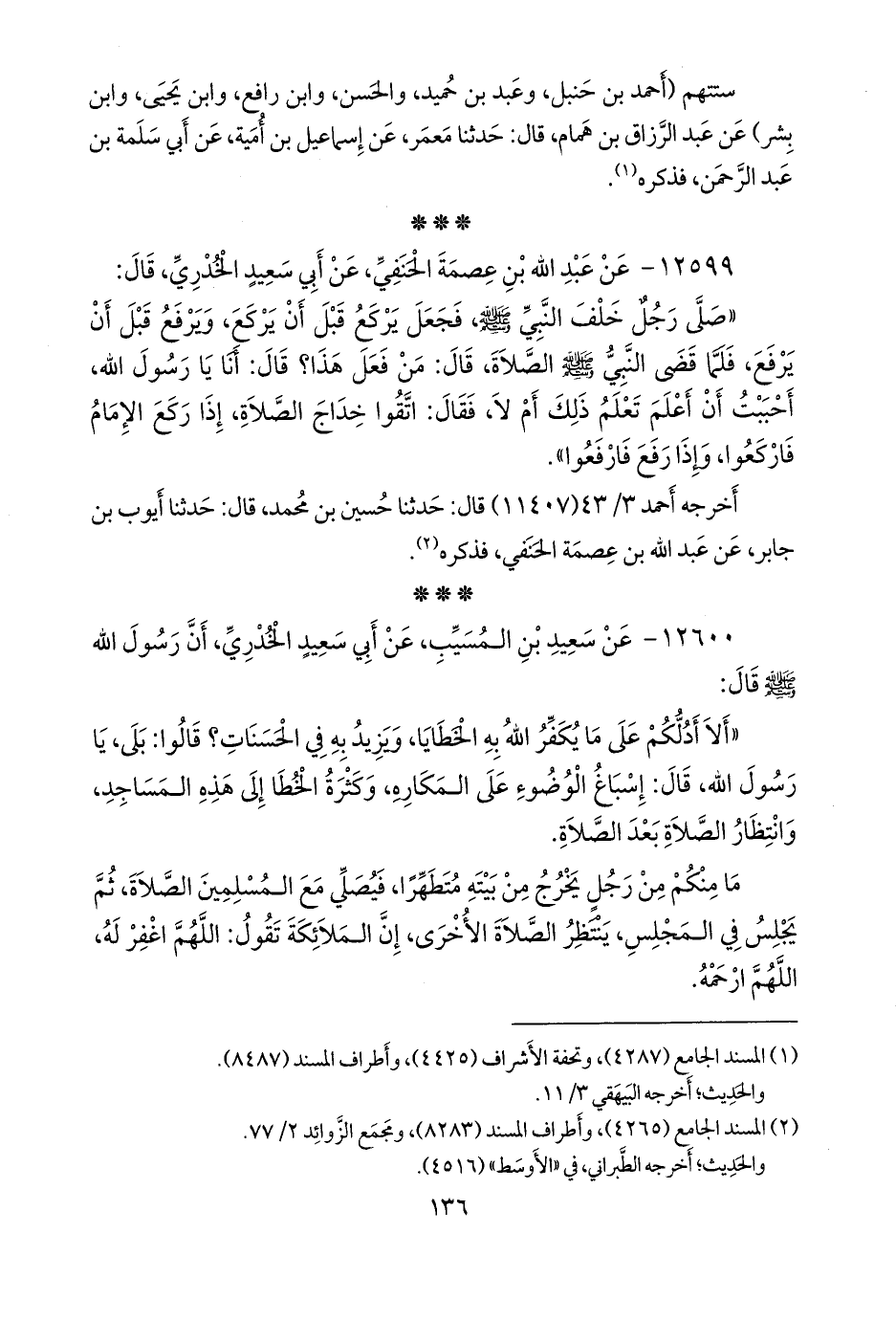 (¬١) المسند الجامع (٤٢٦٥)، وأطراف المسند (٨٢٨٣)، ومَجمَع الزوائد ٢/ ٧٧.