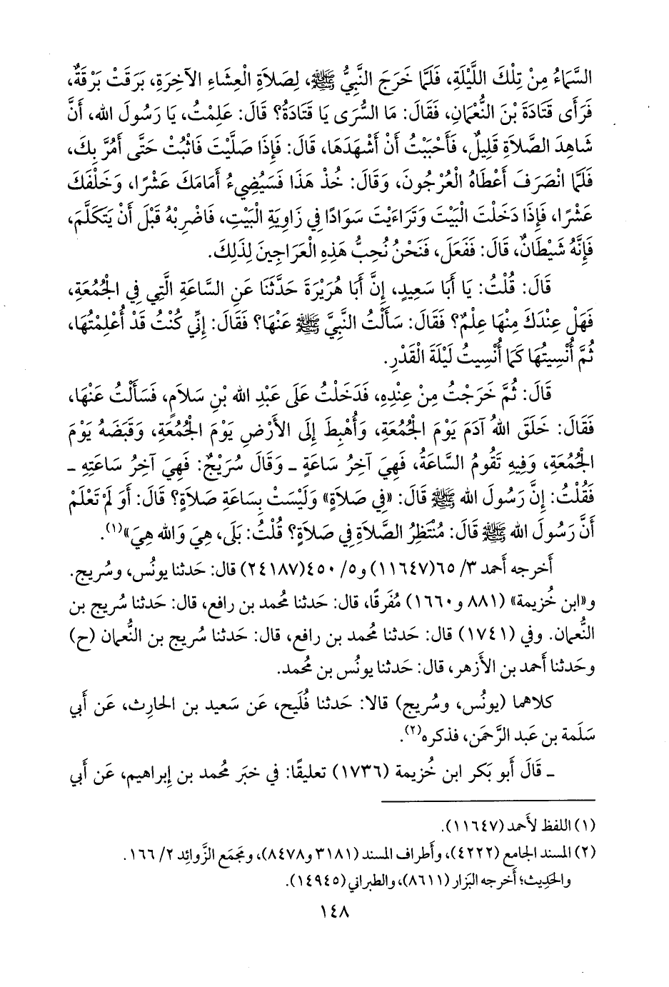 أخرجه أحمد (١١٦٤٧) و ٥/ ٤٥٠ (٢٤١٨٧) قال: حدثنا يونس، وسريج. و «ابن خزيمة» (٨٨١ و ١٦٦٠) مفرقا، قال: حدثنا محمد بن رافع، قال: حدثنا سريج بن النعمان. وفي (١٧٤١) قال: حدثنا محمد بن رافع، قال: حدثنا سريج بن النعمان (ح) وحدثنا أحمد بن الأزهر، قال: حدثنا يونس بن محمد.
