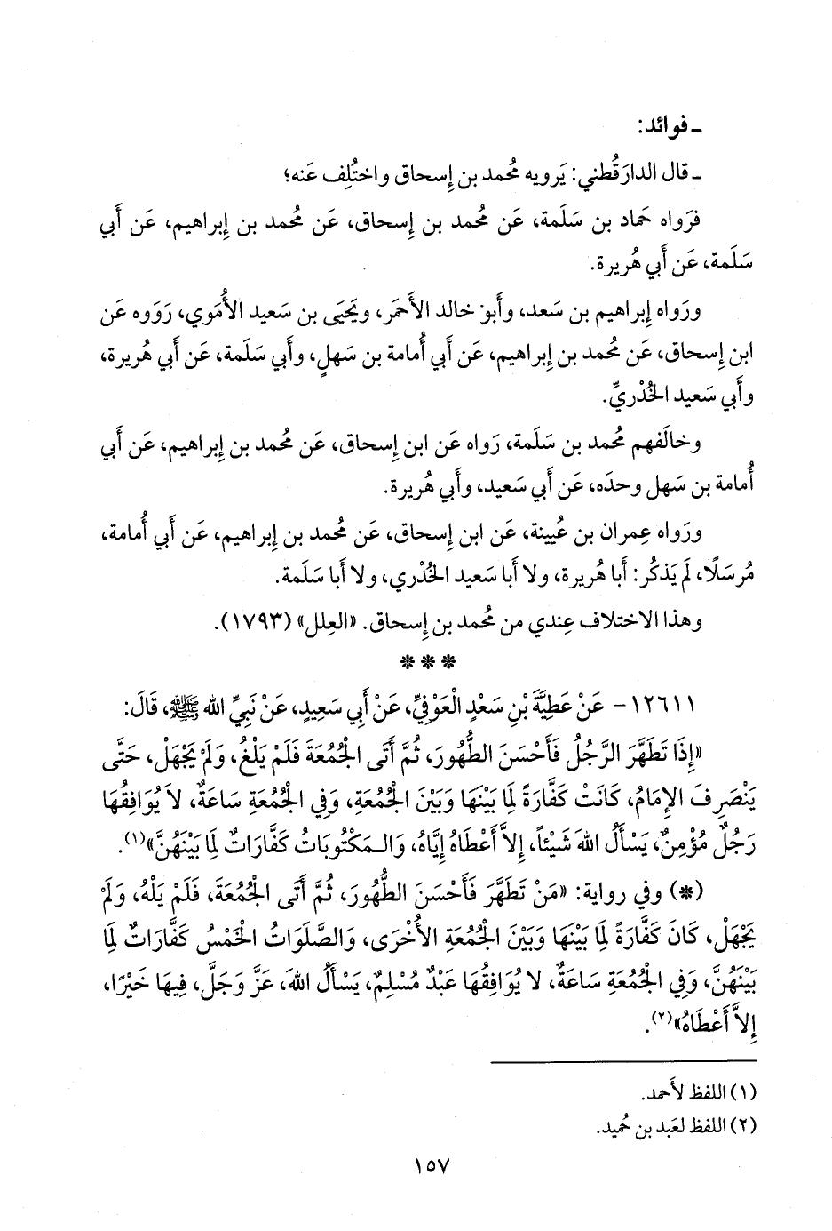 ورواه إبراهيم بن سعد، وأَبو خالد الأحمر، ويحيى بن سعيد الأُمَوي، رووه عن ابن إسحاق، عن محمد بن إبراهيم، عن أَبي أُمامة بن سهل، وأبي سلمة، عن أبي هريرة، وأبي سعيد الخُدْري.