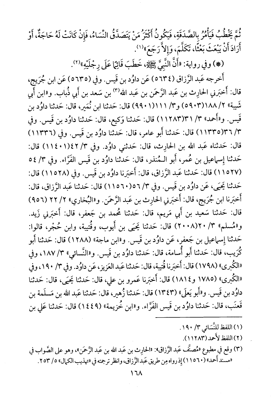(¬٢) وقع في مطبوع «مصنف عبد الرزاق»: «الحارث بن عبد الله بن عبد الرَّحمَن»، وهو على الصواب في «مسند أحمد» (١١٥٦٠) إذ رواه من طريق عبد الرزاق، وانظر ترجمته في «تهذيب الكمال» ٥/ ٢٥٣.