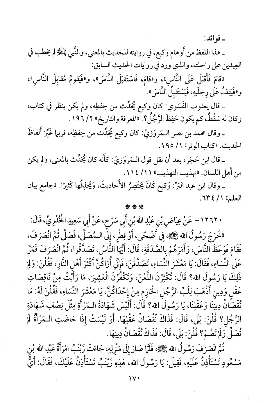 - وقال ابن عبد البَر: وكيع كان يختصر الأحاديث، ويحذفها كثيرا. «جامع بيان العلم» ١/ ٦٣٤.