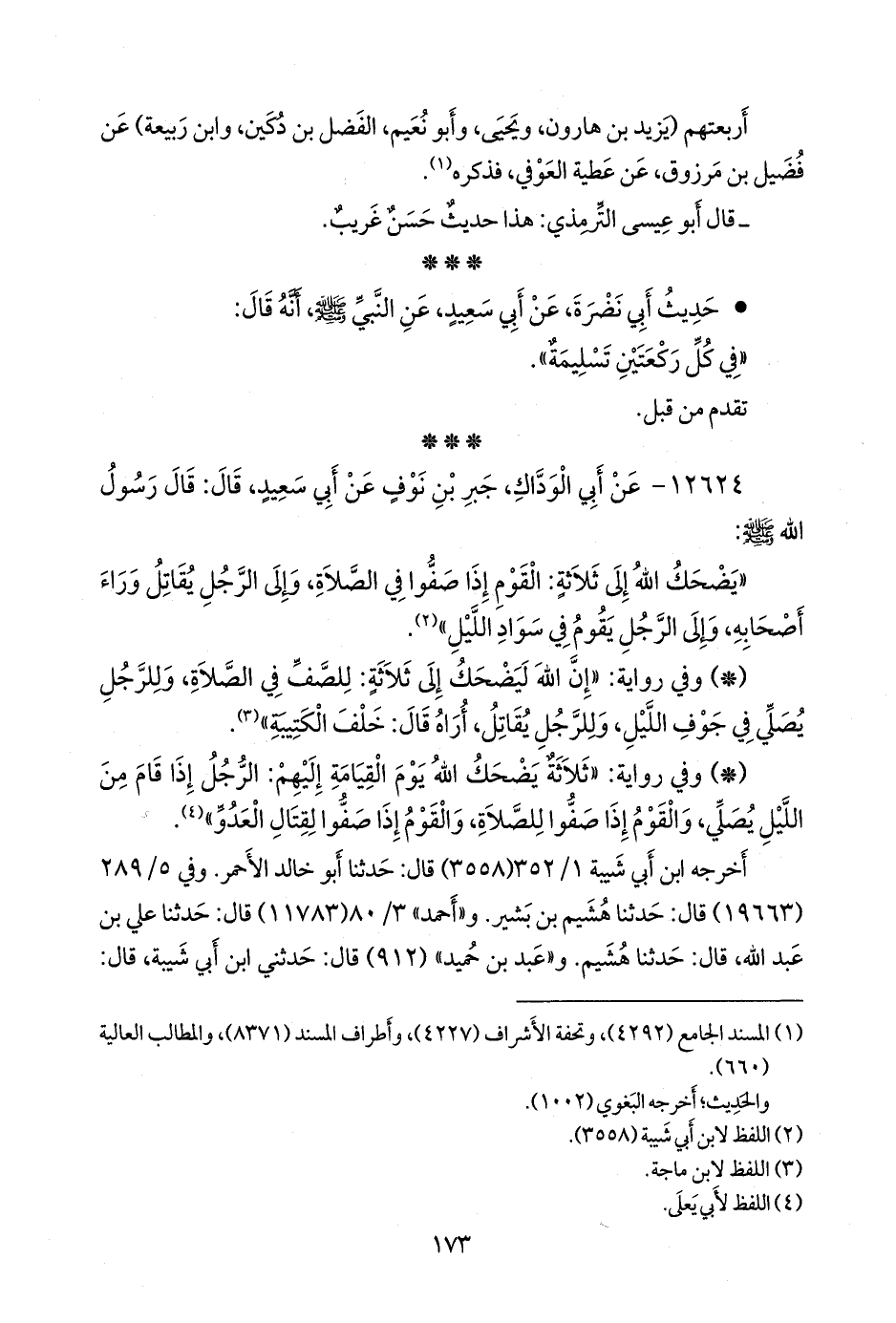 ١٢٦٢٤ - عن أبي الوداك، جبر بن نوف عن أبي سعيد، قال: قال رسول الله صَلى الله عَليه وسَلم: