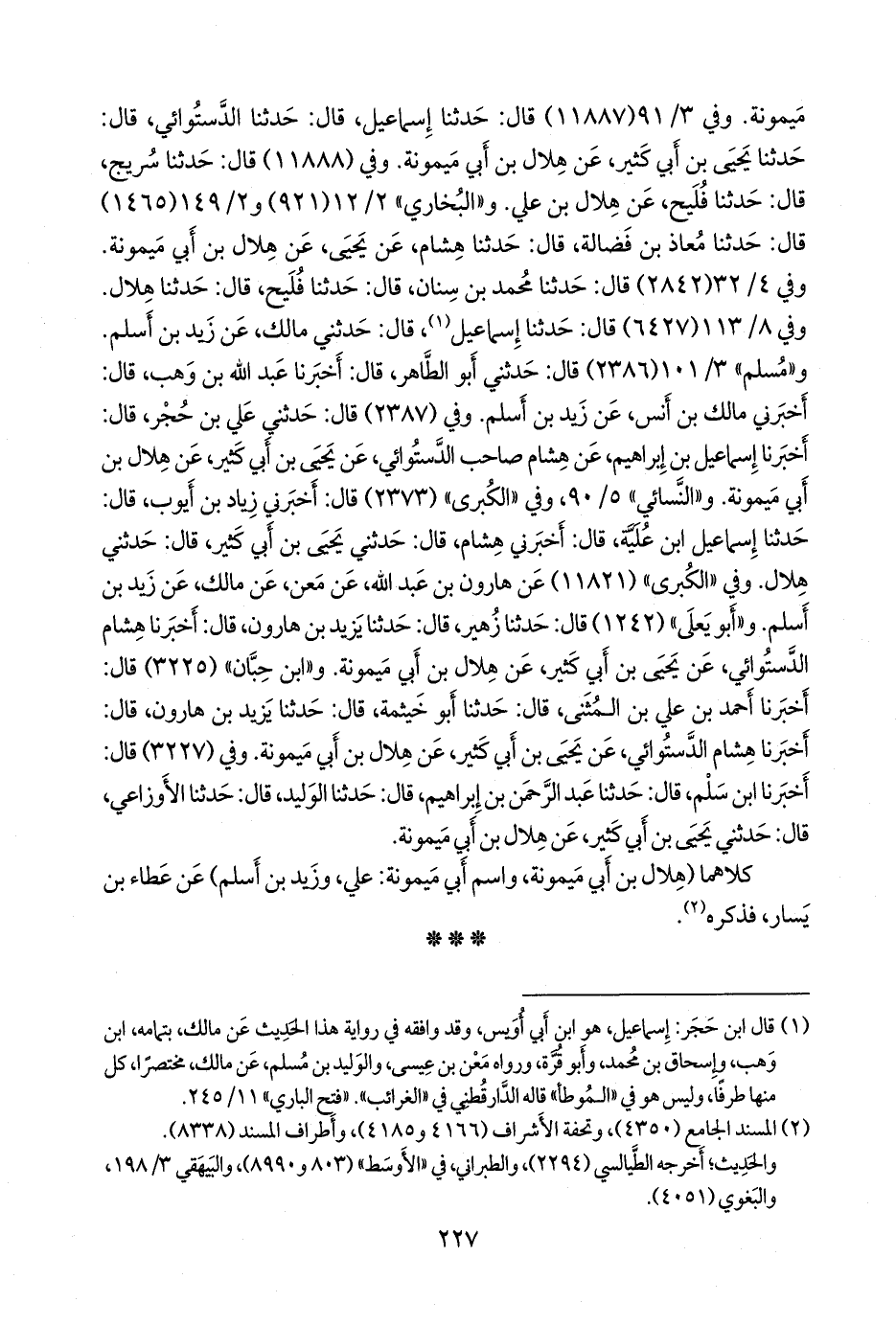 وفي ٤/ ٢٦ (٢٨٤٢) قال: حدثنا محمد بن سنان، قال: حدثنا فليح، قال: حدثنا هلال. وفي ٨/ ٩١ (٦٤٢٧) قال: حدثنا إسماعيل (¬١)، قال: حدثني مالك، عن زيد بن أسلم. و «مسلم» ٣/ ١٠١ (٢٣٨٦) قال: حدثني أَبو الطاهر، قال: أخبرنا عبد الله بن وهب، قال: أخبرني مالك بن أنس، عن زيد بن أسلم. وفي (٢٣٨٧) قال: حدثني علي بن حُجْر، قال: أخبرنا إسماعيل بن إبراهيم، عن هشام صاحب الدَّستوائي، عن يحيى بن أبي كثير، عن هلال بن أبي ميمونة. و «النَّسَائي» ٥/ ٩٠، وفي «الكبرى» (٢٣٧٣) قال: أخبرني زياد بن أيوب، قال: حدثنا إسماعيل ابن عُلَية، قال: أخبرني هشام، قال: حدثني يحيى بن أبي كثير، قال: حدثني هلال. وفي «الكبرى» (١١٨٢١) عن هارون بن عبد الله، عن مَعْن، عن مالك، عن زيد بن أسلم. و «أَبو يَعلى» (١٢٤٢) قال: حدثنا زهير، قال: حدثنا يزيد بن هارون، قال: أخبرنا هشام الدَّستوائي، عن يحيى بن أبي كثير، عن هلال بن أبي ميمونة. و «ابن حِبَّان» (٣٢٢٥) قال: أخبرنا أحمد بن علي بن المثنى، قال: حدثنا أَبو خيثمة، قال: حدثنا يزيد بن هارون، قال: أخبرنا هشام الدَّستوائي، عن يحيى بن أبي كثير، عن هلال بن أبي ميمونة. وفي (٣٢٢٧) قال: أخبرنا ابن سلم، قال: حدثنا عبد الرَّحمَن بن إبراهيم، قال: حدثنا الوليد، قال: حدثنا الأوزاعي، قال: حدثني يحيى بن أبي كثير، عن هلال بن أبي ميمونة.
