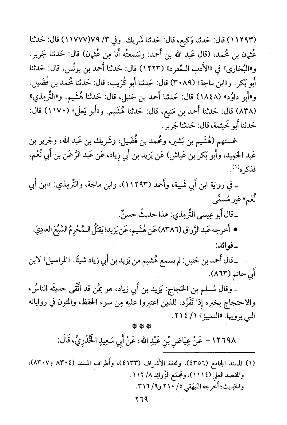 - قال أَحمد بن حنبل: لم يسمع هشيم من يزيد بن أَبي زياد شيئا. «المراسيل» لابن أَبي حاتم (٨٦٣).