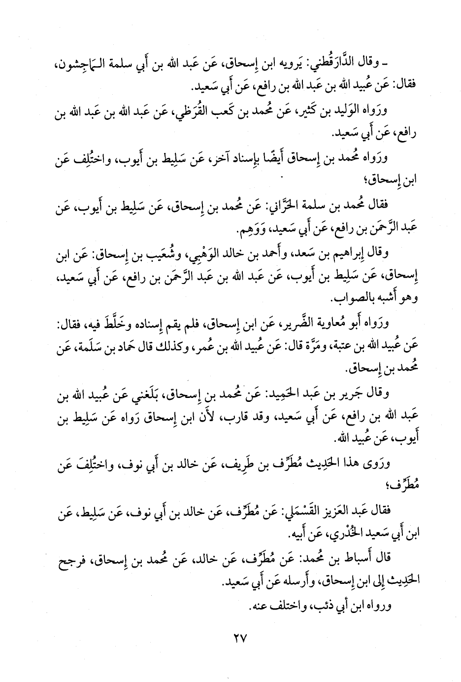 قال أسباط بن محمد: عن مطرف، عن خالد، عن محمد بن إسحاق، فرجح الحديث إلى ابن إسحاق، وأرسله عن أبي سعيد.