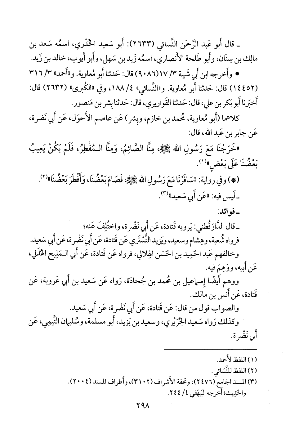 فرواه شعبة، وهشام وسعيد، ويزيد التُّستَري عن قتادة، عن أبي نضرة، عن أبي سعيد.
