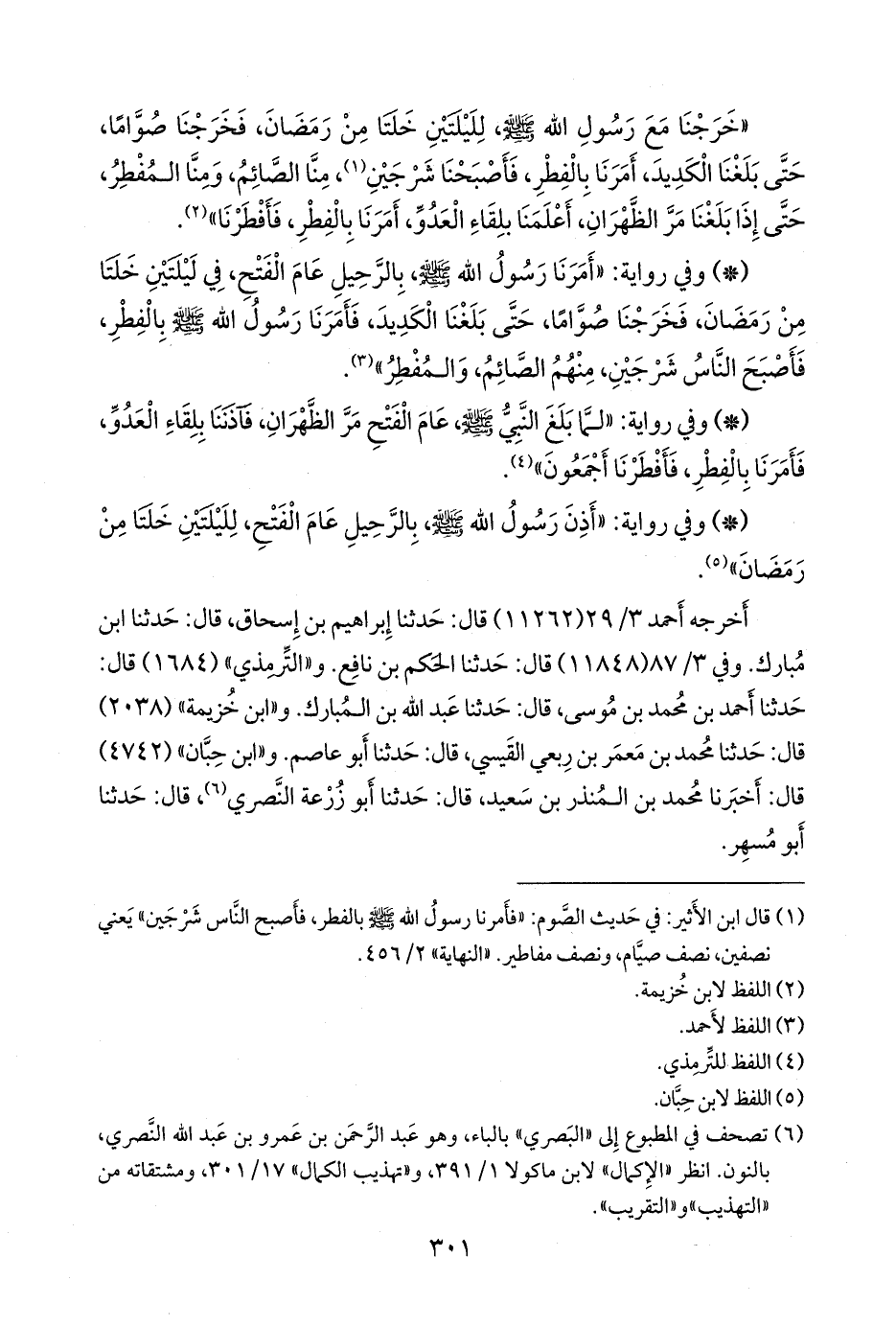 أخرجه أحمد (١١٢٦٢) قال: حدثنا إبراهيم بن إسحاق، قال: حدثنا ابن مبارك. وفي ٣/ ٨٧ (١١٨٤٨) قال: حدثنا الحكم بن نافع. و «التِّرمِذي» (١٦٨٤) قال: حدثنا أحمد بن محمد بن موسى، قال: حدثنا عبد الله بن المبارك. و «ابن خزيمة» (٢٠٣٨) قال: حدثنا محمد بن معمر بن رِبعي القيسي، قال: حدثنا أَبو عاصم. و «ابن حِبَّان» (٤٧٤٢) قال: أخبرنا محمد بن المنذر بن سعيد، قال: حدثنا أَبو زُرعَة النصري (¬٣)، قال: حدثنا أَبو مسهر.