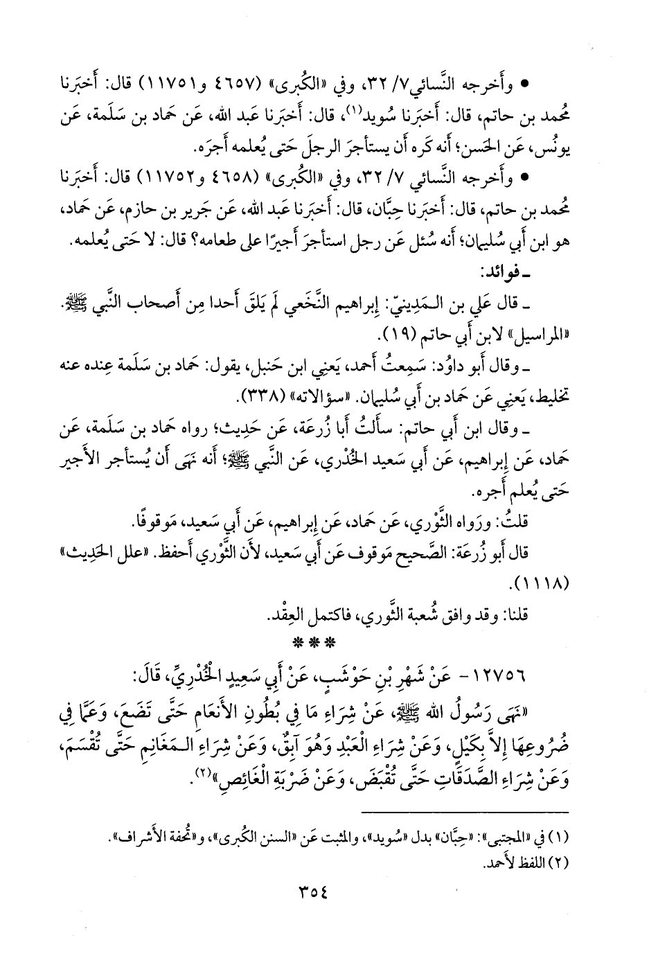 - وقال ابن أبي حاتم: سألت أَبا زُرعَة، عن حديث؛ رواه حماد بن سلمة، عن حماد، عن إبراهيم، عن أبي سعيد الخُدْري، عن النبي صَلى الله عَليه وسَلم؛ أنه نهى أن يستأجر الأجير حتى يعلم أجره.