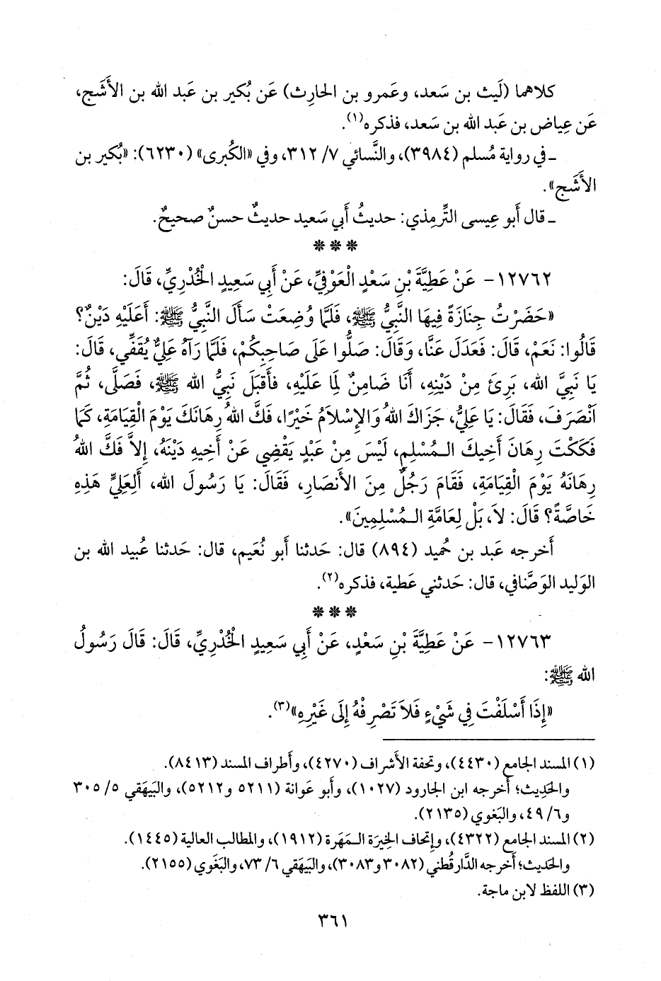 كلاهما (محمد بن عبد الله بن نُمير، وابن عيسى) عن شجاع بن الوليد أبي بدر، عن زياد بن خيثمة، عن سعد، يعني الطائي، عن عطية بن سعد، فذكره.