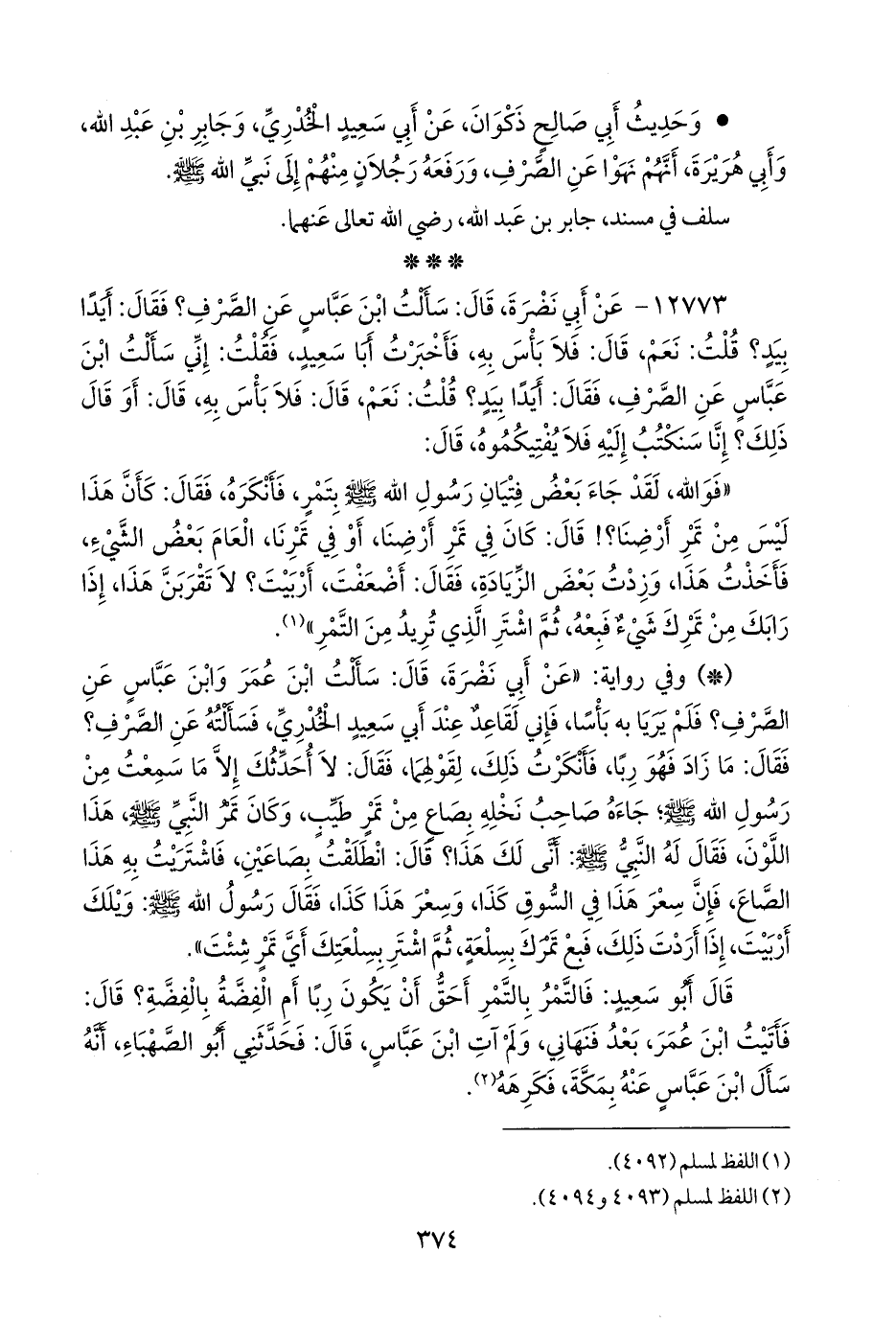 • وحديث أبي صالح ذكوان، عن أبي سعيد الخُدْري، وجابر بن عبد الله، وأبي هريرة، أنهم نهوا عن الصرف، ورفعه رجلان منهم إلى نبي الله صَلى الله عَليه وسَلم.