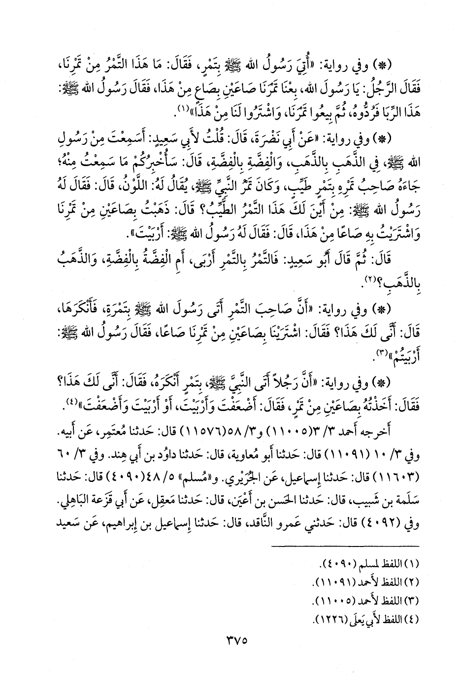 - وفي رواية: «أن رجلا أتى النبي صَلى الله عَليه وسَلم بتمر أنكره، فقال: أنى لك هذا؟ فقال: أخذته بصاعين من تمر، فقال: أضعفت وأربيت، أو أربيت وأضعفت» (¬١).