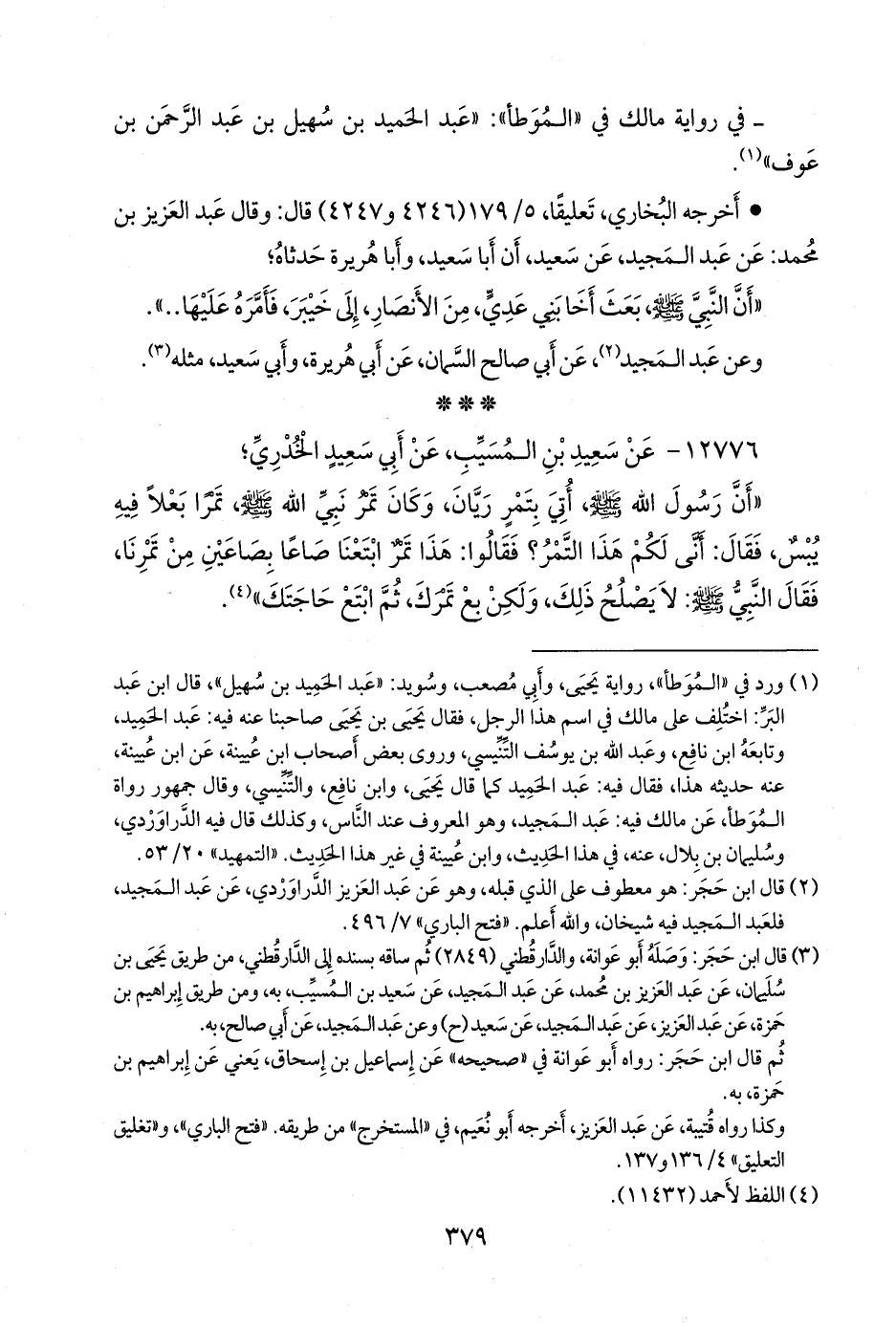 (¬٢) قال ابن حجر: وصله أَبو عَوانة، والدارقُطني (٢٨٤٩) ثم ساقه بسنده إلى الدارقُطني، من طريق يحيى بن سليمان، عن عبد العزيز بن محمد، عن عبد المجيد، عن سعيد بن المُسَيب، به، ومن طريق إبراهيم بن حمزة، عن عبد العزيز، عن عبد المجيد، عن سعيد (ح) وعن عبد المجيد، عن أبي صالح، به، ثم قال ابن حجر: رواه أَبو عَوانة في «صحيحه» عن إسماعيل بن إسحاق، يعني عن إبراهيم بن حمزة، به، وكذا رواه قتيبة، عن عبد العزيز، أخرجه أَبو نُعيم في «المستخرج» من طريقه. «فتح الباري»، و «تغليق التعليق» ٤/ ١٣٦ و ١٣٧.