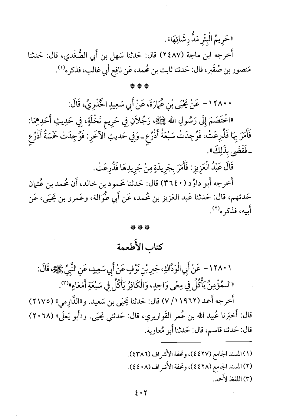 (¬٢) المسند الجامع (٤٤٤٣)، وأطراف المسند (٨٦٤١)، ومَجمَع الزوائد ٥/ ٣٢، وإتحاف الخِيرَة المَهَرة (٣٥٩٨).