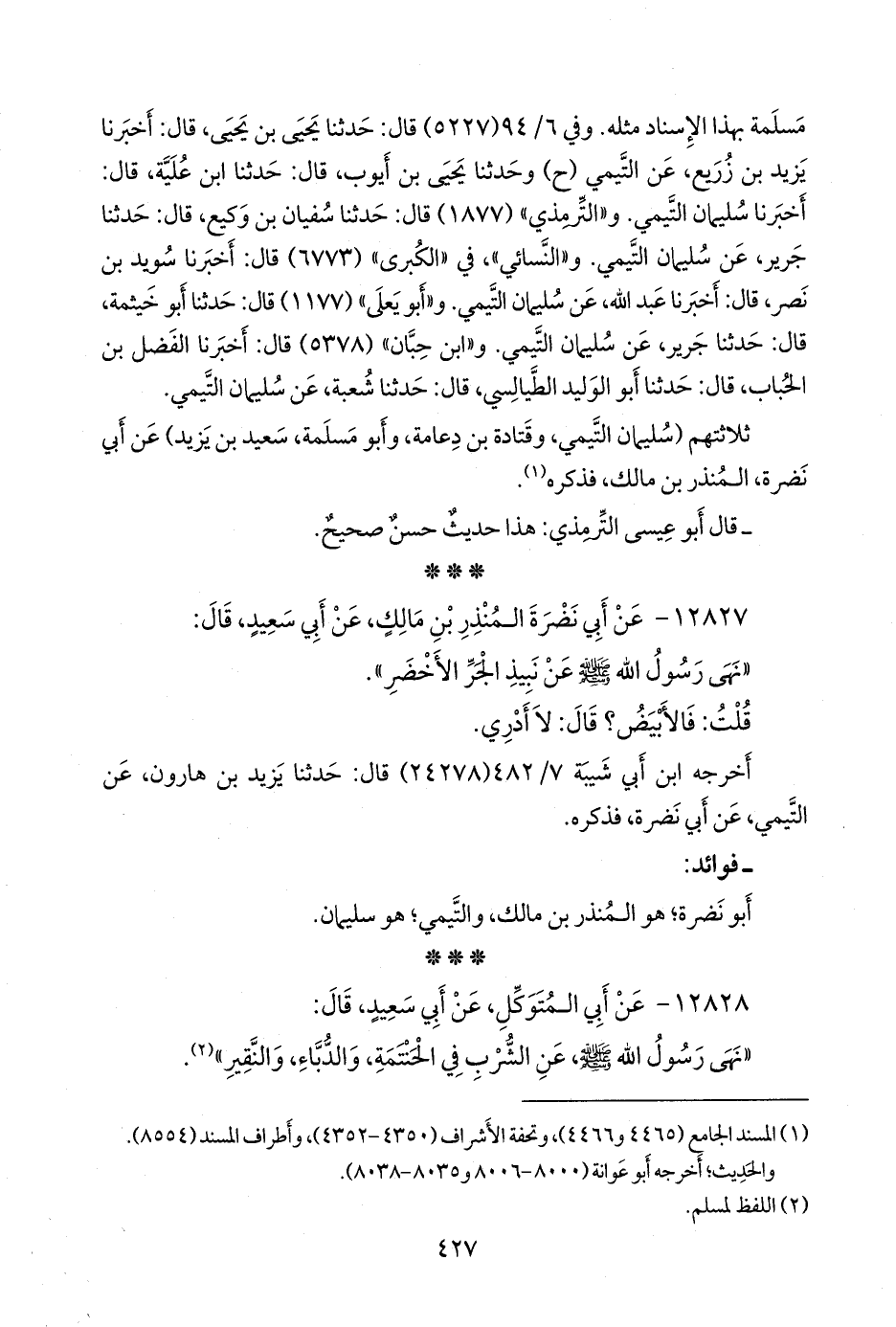 (¬٢) المسند الجامع (٤٤٥٧)، وتحفة الأشراف (٤٢٥٣)، وأطراف المسند (٨٥٣٨).