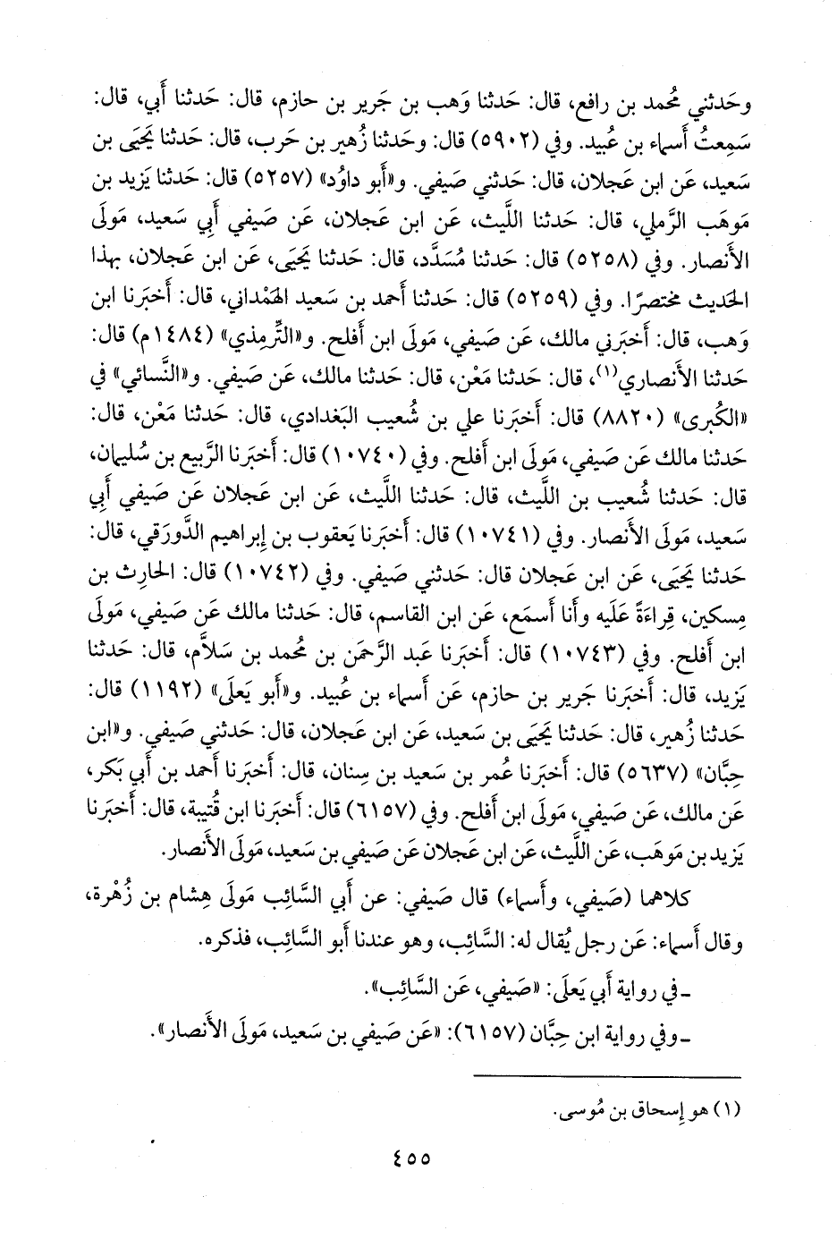 (¬٢) تحرف في طبعة الرسالة إلى: «صيفي بن سعيد»، وهو على الصواب في طبعة التأصيل، و «التقاسيم والأنواع»، و «إتحاف المهرة».