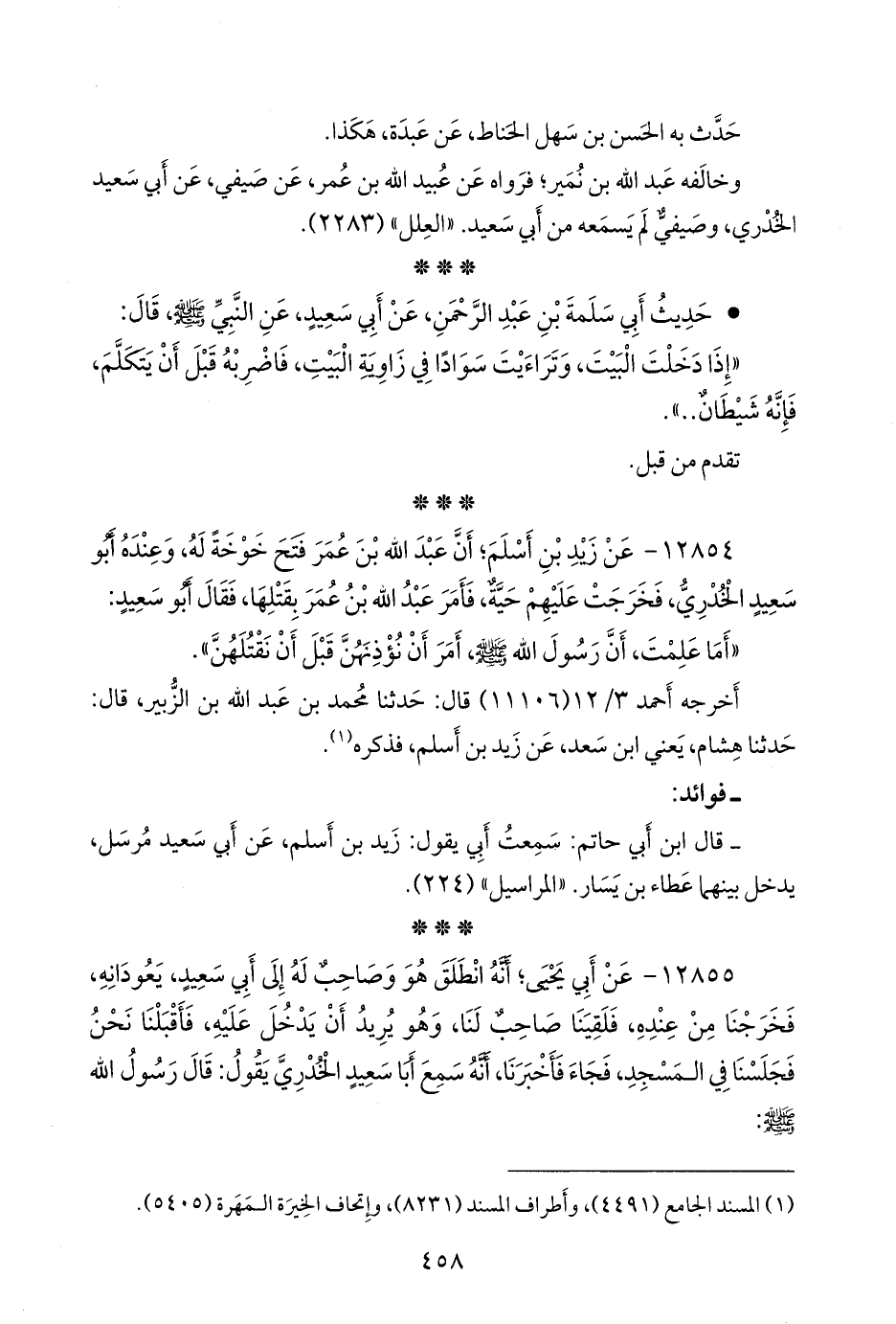 أخرجه أحمد (١١١٠٦) قال: حدثنا محمد بن عبد الله بن الزبير، قال: حدثنا هشام، يعني ابن سعد، عن زيد بن أسلم، فذكره (¬١).