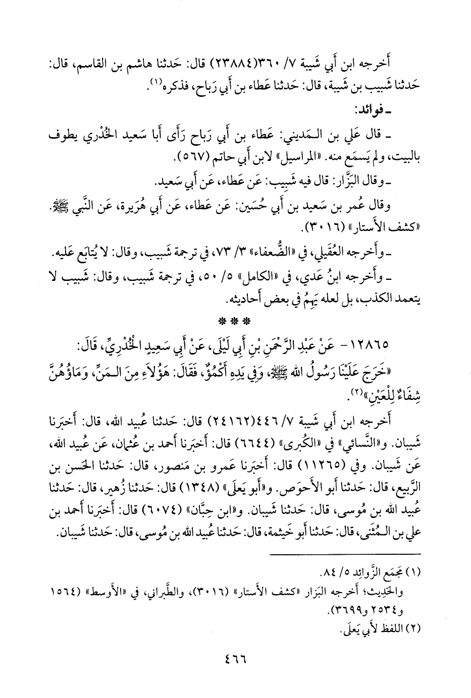 كلاهما (شيبان بن عبد الرَّحمَن، وأَبو الأحوص سَلَّام بن سليم) عن سليمان بن مِهران الأعمش، عن المنهال بن عَمرو، عن عبد الرَّحمَن بن أبي ليلى، فذكره (¬٢).