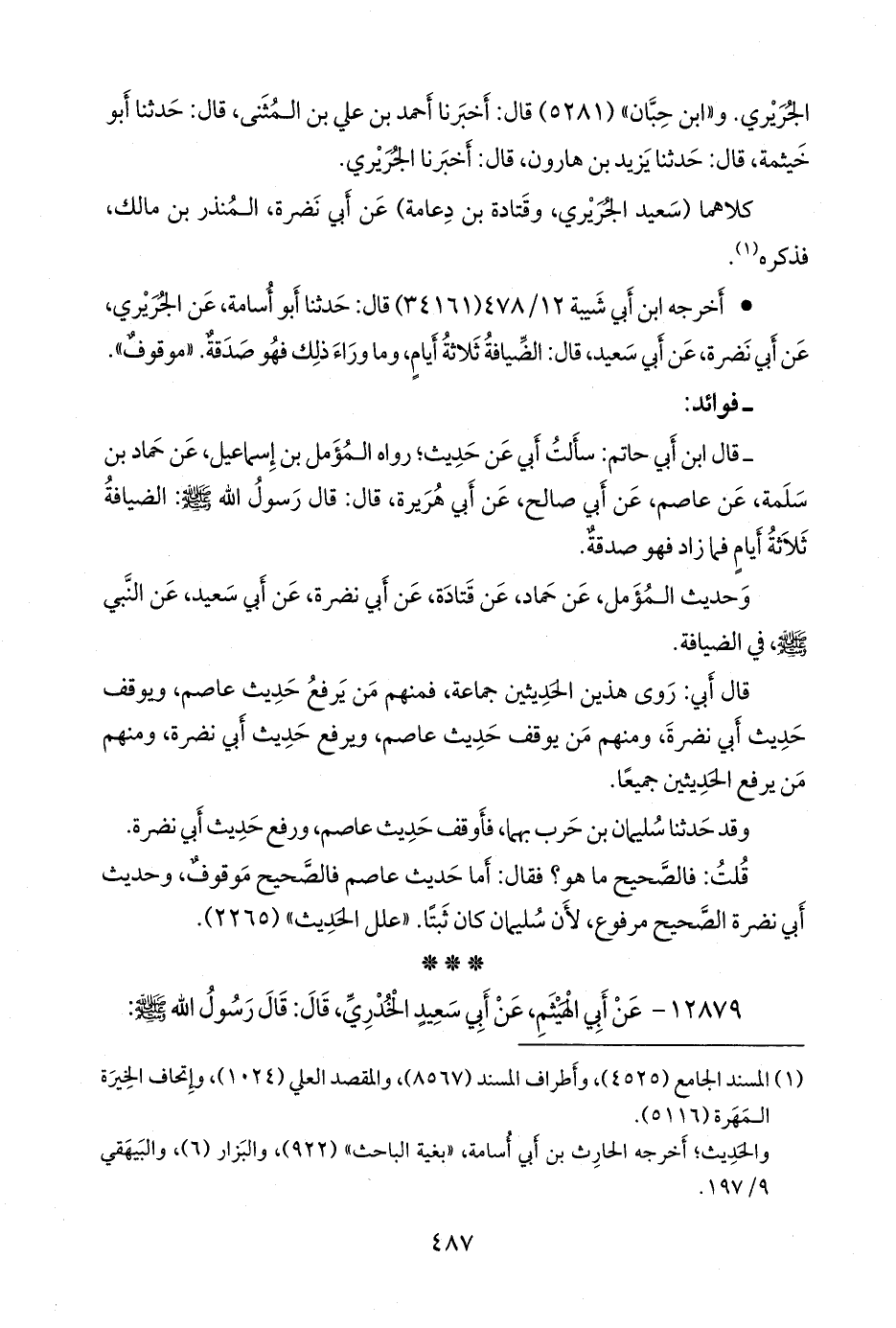 وحديث المؤمل، عن حماد، عن قتادة، عن أبي نضرة، عن أبي سعيد، عن النبي صَلى الله عَليه وسَلم في الضيافة.