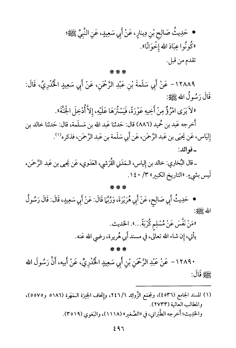 ١٢٨٨٩ - عن أبي سلمة بن عبد الرَّحمَن، عن أبي سعيد الخُدْري، قال: قال رسول الله صَلى الله عَليه وسَلم: