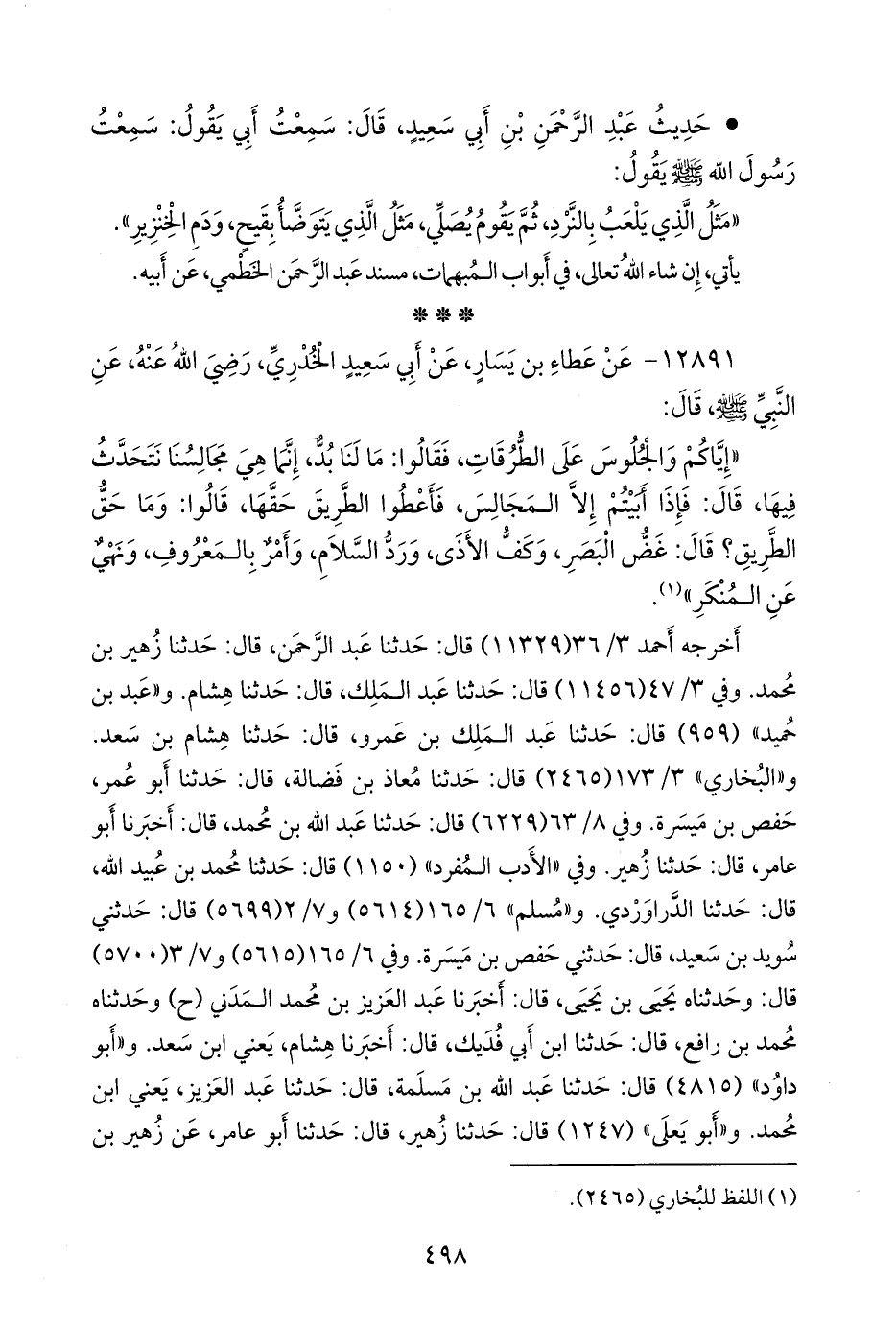 ١٢٨٩١ - عن عطاء بن يسار، عن أبي سعيد الخُدْري، رضي الله عنه، عن النبي صَلى الله عَليه وسَلم قال:
