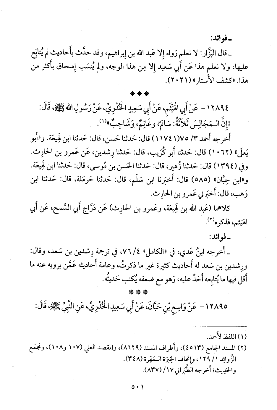 ١٢٨٩٤ - عن أبي الهيثم، عن أبي سعيد الخُدْري، عن رسول الله صَلى الله عَليه وسَلم قال: