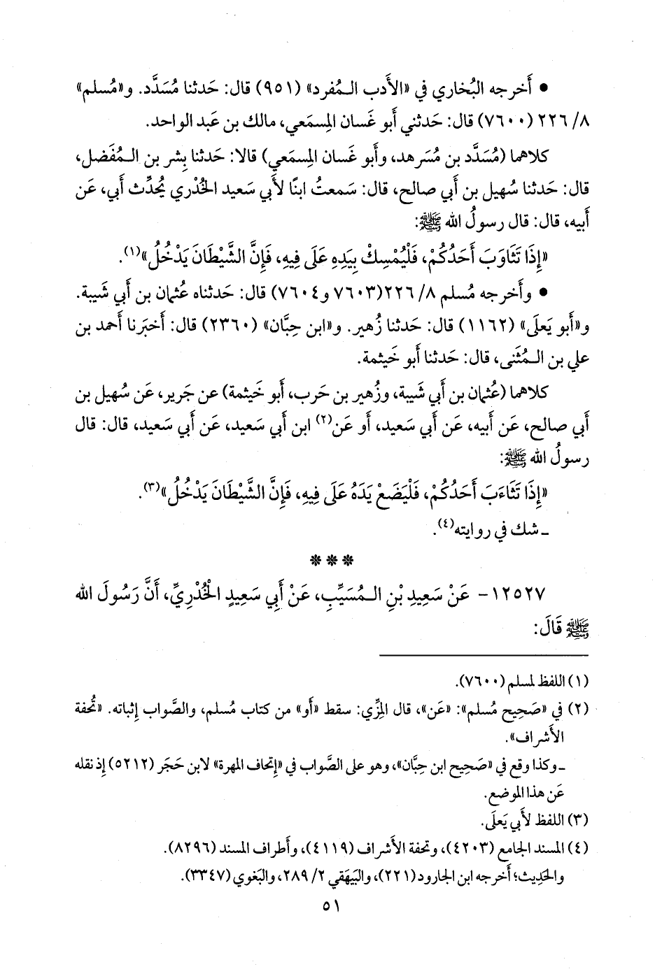 كلاهما (عثمان بن أبي شيبة، وزهير بن حرب أَبو خيثمة) عن جرير، عن سهيل بن أبي صالح، عن أبيه، عن أبي سعيد، أو (¬١) عن ابن أبي سعيد، عن أبي سعيد، قال: قال رسول الله صَلى الله عَليه وسَلم:
