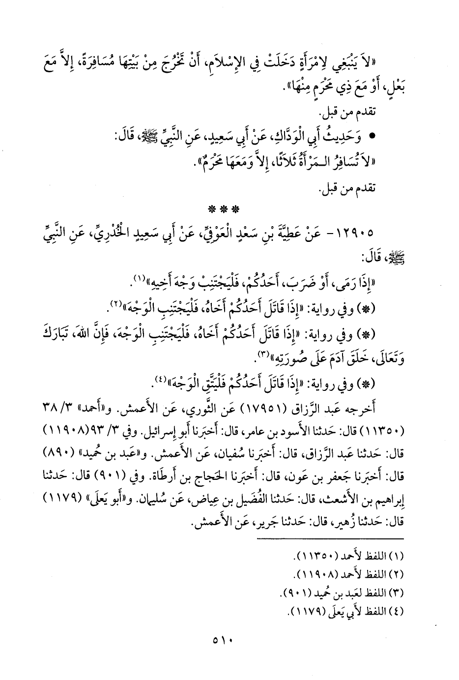 - وفي رواية: «إذا قاتل أحدكم فليتق الوجه» (¬٤).