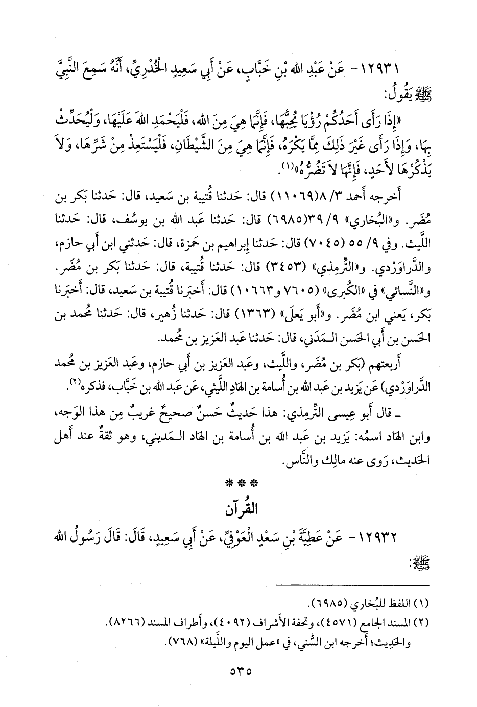 (¬٢) المسند الجامع (٤٥٨١)، وتحفة الأشراف (٤٢١٦).