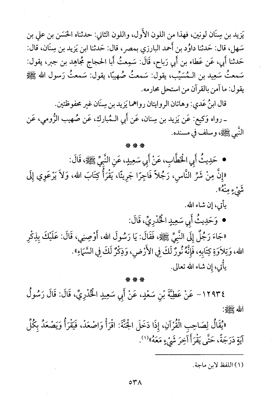 كلاهما (معاوية، وعُبيد الله) عن شَيبان بن عبد الرَّحمَن، عن فراس بن يحيى، عن عطية بن سعد العوفي، فذكره (¬٢).