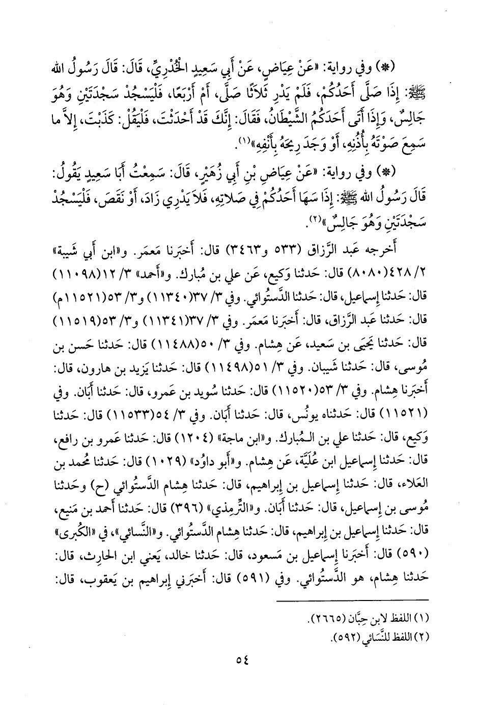 أخرجه عبد الرزاق (٥٣٣ و ٣٤٦٣) قال: أخبرنا مَعمَر. و «ابن أبي شيبة» (٨٠٨٠) قال: حدثنا وكيع، عن علي بن مبارك. و «أحمد» (١١٠٩٨) قال: حدثنا إسماعيل، قال: حدثنا الدَّستوائي. وفي (١١٣٤٠ و ١١٥٢١ م) قال: حدثنا عبد الرزاق، قال: أخبرنا مَعمَر. وفي (١١٣٤١ و ١١٥١٩) قال: حدثنا يحيى بن سعيد، عن هشام. وفي (١١٤٨٨) قال: حدثنا حسن بن موسى، قال: حدثنا شَيبان. وفي (١١٤٩٨) قال: حدثنا يزيد بن هارون، قال: أخبرنا هشام. وفي (١١٥٢٠) قال: حدثنا سويد بن عَمرو، قال: حدثنا أبان. وفي (١١٥٢١) قال: حدثناه يونس، قال: حدثنا أبان. وفي (١١٥٣٣) قال: حدثنا وكيع، قال: حدثنا علي بن المبارك. و «ابن ماجة» (١٢٠٤) قال: حدثنا عَمرو بن رافع، قال: حدثنا إسماعيل ابن عُلَية، عن هشام. و «أَبو داود» (١٠٢٩) قال: حدثنا محمد بن العلاء، قال: حدثنا إسماعيل بن إبراهيم، قال: حدثنا هشام الدَّستوائي (ح) وحدثنا موسى بن إسماعيل، قال: حدثنا أبان. و «التِّرمِذي» (٣٩٦) قال: حدثنا أحمد بن مَنيع، قال: حدثنا إسماعيل بن إبراهيم، قال: حدثنا هشام الدَّستوائي. و «النَّسَائي» في «الكبرى» (٥٩٠) قال: أخبرنا إسماعيل بن مسعود، قال: حدثنا خالد، يعني ابن الحارث، قال: حدثنا هشام، هو الدَّستوائي. وفي (٥٩١) قال: أخبرني إبراهيم بن يعقوب، قال: