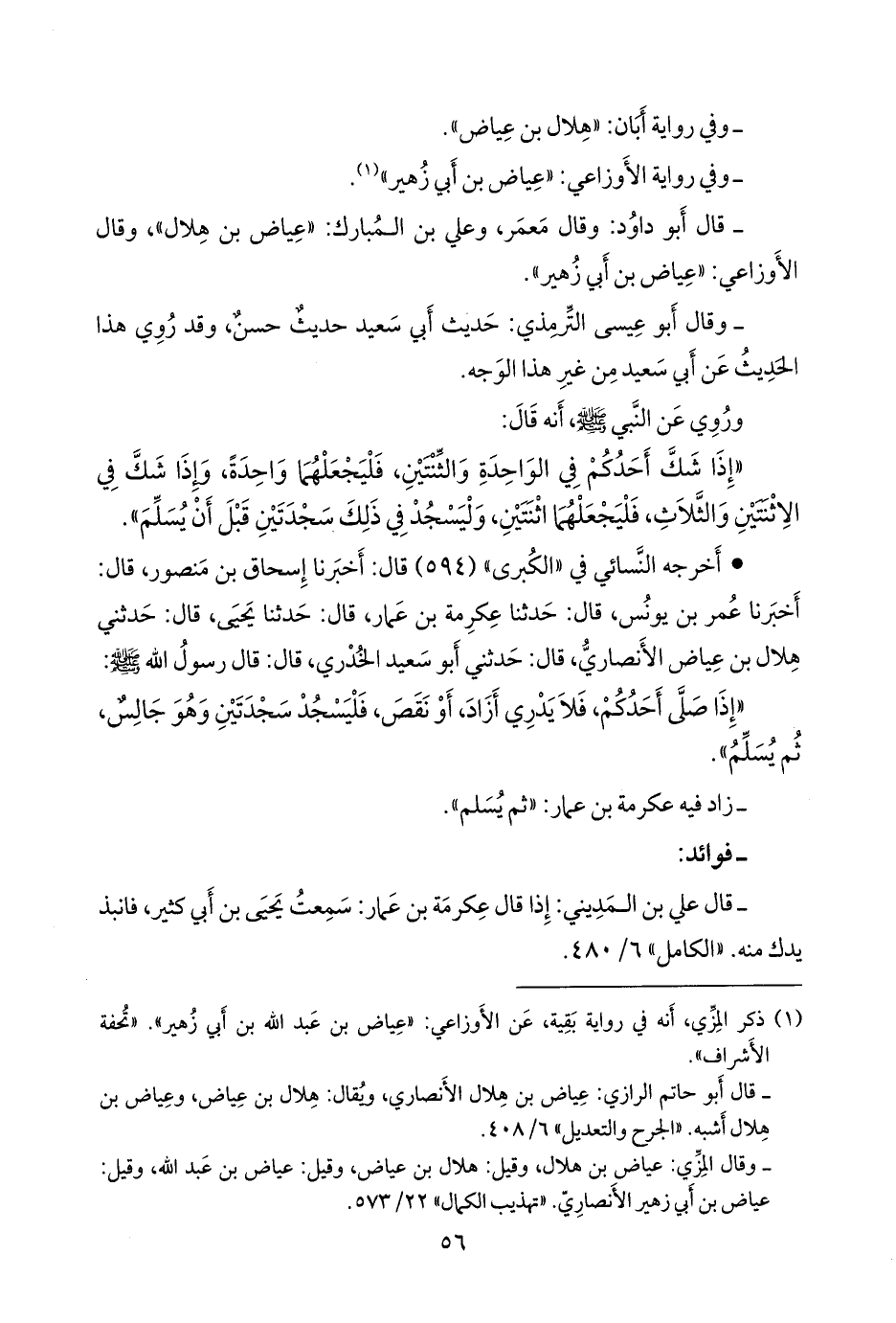 • أَخرجه النَّسَائي في «الكبرى» (٥٩٤) قال: أخبرنا إسحاق بن منصور، قال: أخبرنا عمر بن يونس، قال: حدثنا عكرمة بن عمار، قال: حدثنا يحيى، قال: حدثني هلال بن عياض الأَنصاري، قال: حدثني أَبو سعيد الخُدْري، قال: قال رسول الله صَلى الله عَليه وسَلم: