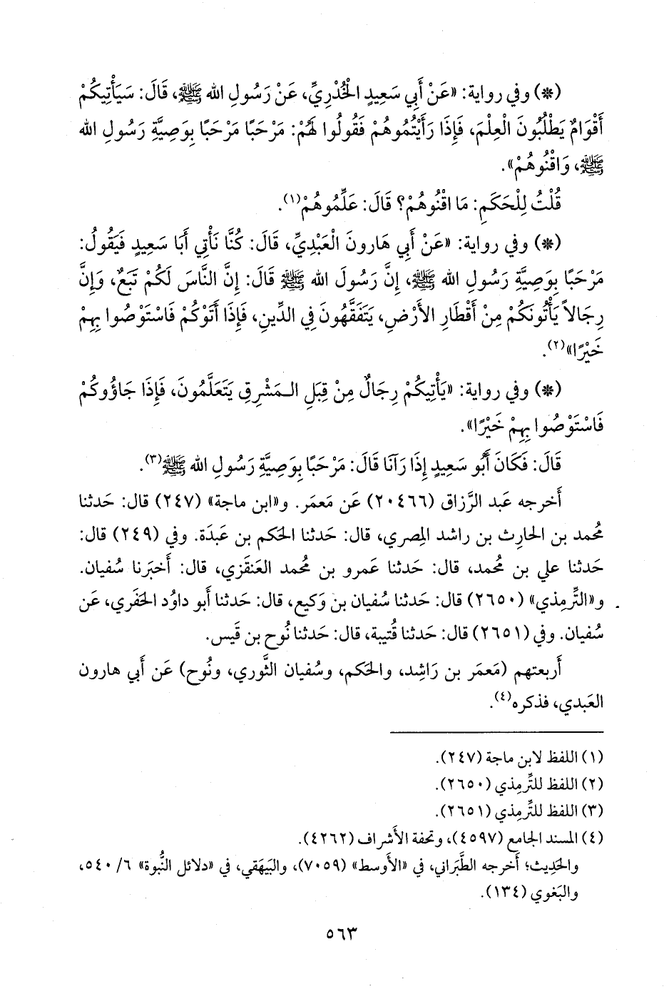 - وفي رواية: «يأتيكم رجال من قبل المشرق يتعلمون، فإذا جاؤوكم فاستوصوا بهم خيرا».