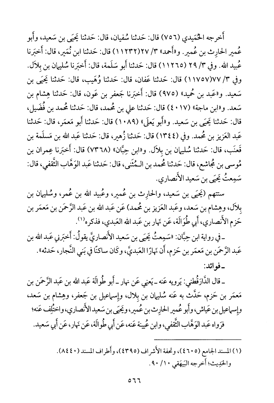 وفي ٣/ ٧٧ (١١٧٥٧) قال: حدثنا عفان، قال: حدثنا وهيب، قال: حدثنا يحيى بن سعيد. و «عَبد بن حُميد» (٩٧٥) قال: أخبرنا جعفر بن عون، قال: حدثنا هشام بن سعد. و «ابن ماجة» (٤٠١٧) قال: حدثنا علي بن محمد، قال: حدثنا محمد بن فضيل، قال: حدثنا يحيى بن سعيد. و «أَبو يَعلى» (١٠٨٩) قال: حدثنا أَبو مَعمَر، قال: حدثنا عبد العزيز بن محمد. وفي (١٣٤٤) قال: حدثنا زهير، قال: حدثنا عبد الله بن مَسلَمة بن قعنب، قال: حدثنا سليمان بن بلال. و «ابن حِبَّان» (٧٣٦٨) قال: أخبرنا عمران بن موسى بن مجاشع، قال: حدثنا محمد بن المثنى، قال: حدثنا عبد الوَهَّاب الثقفي، قال: سمعت يحيى بن سعيد الأَنصاري.