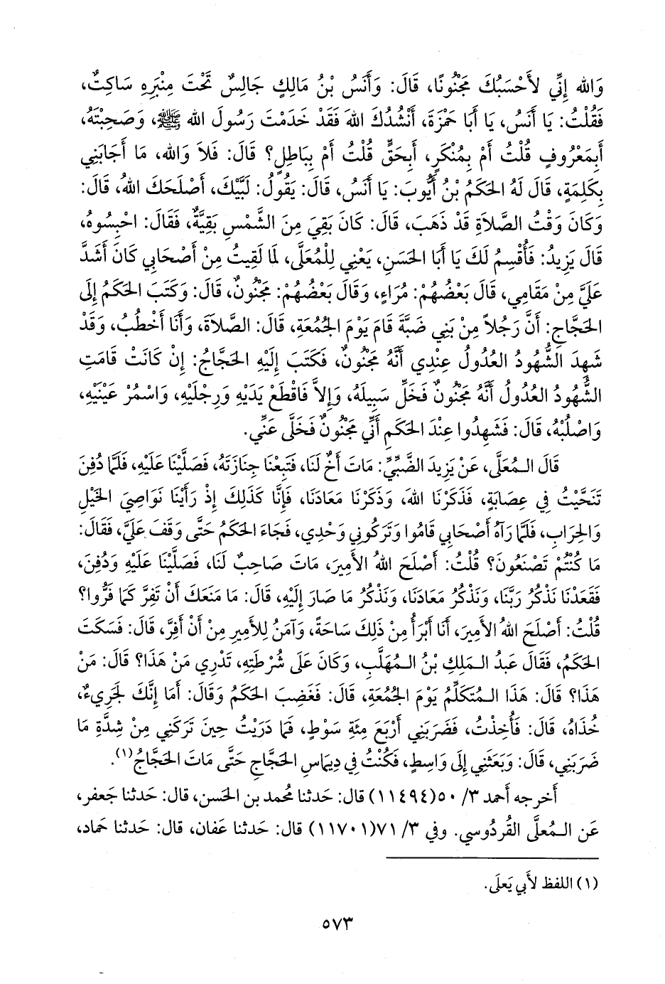 أخرجه أحمد (١١٤٩٤) قال: حدثنا محمد بن الحسن، قال: حدثنا جعفر، عن المعلى القردوسي. وفي ٣/ ٧١ (١١٧٠١) قال: حدثنا عفان، قال: حدثنا حماد،