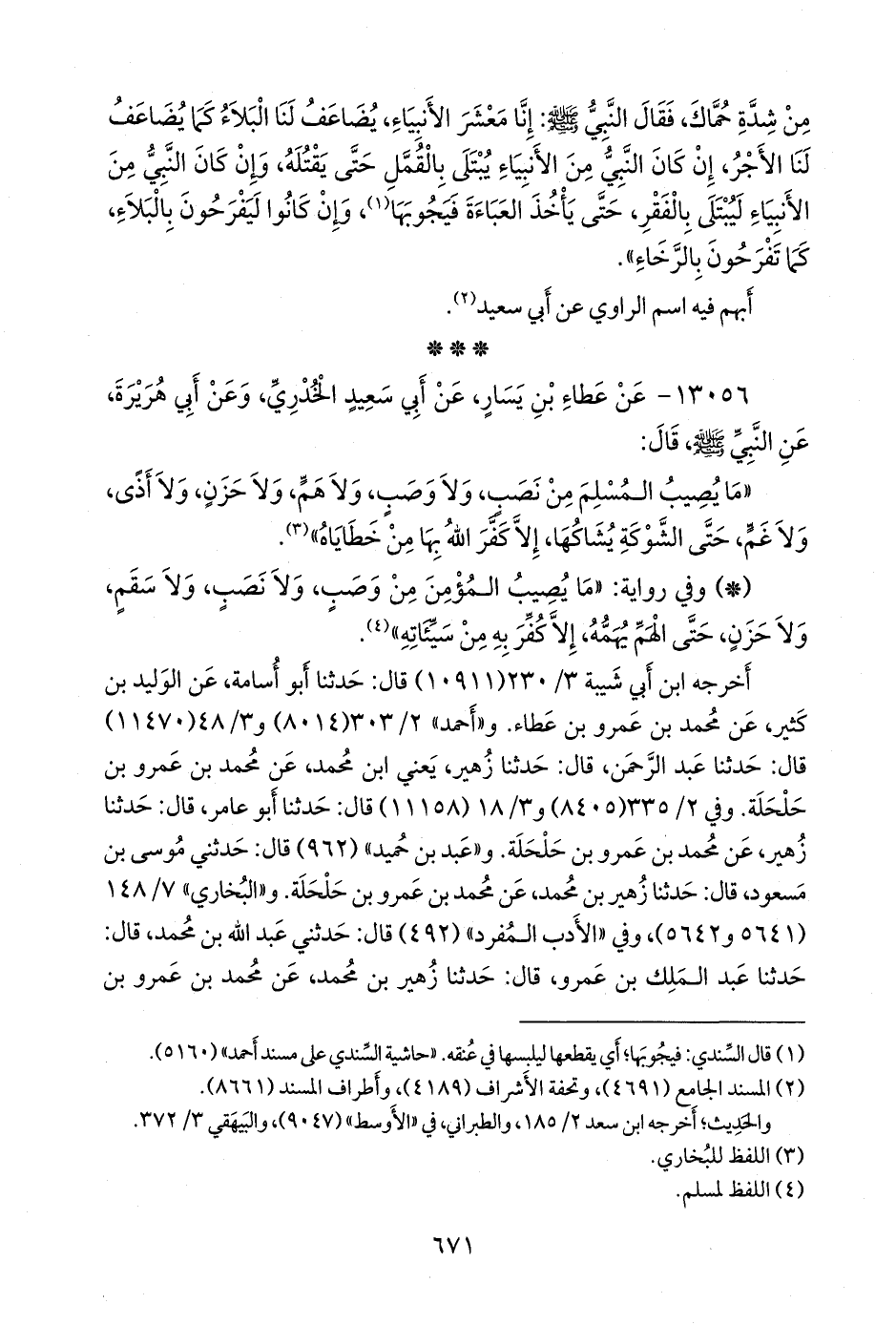 «ما يصيب المسلم من نصب، ولا وصب، ولا هم، ولا حزن، ولا أذى، ولا غم، حتى الشوكة يشاكها، إلا كفر الله بها من خطاياه» (¬١).