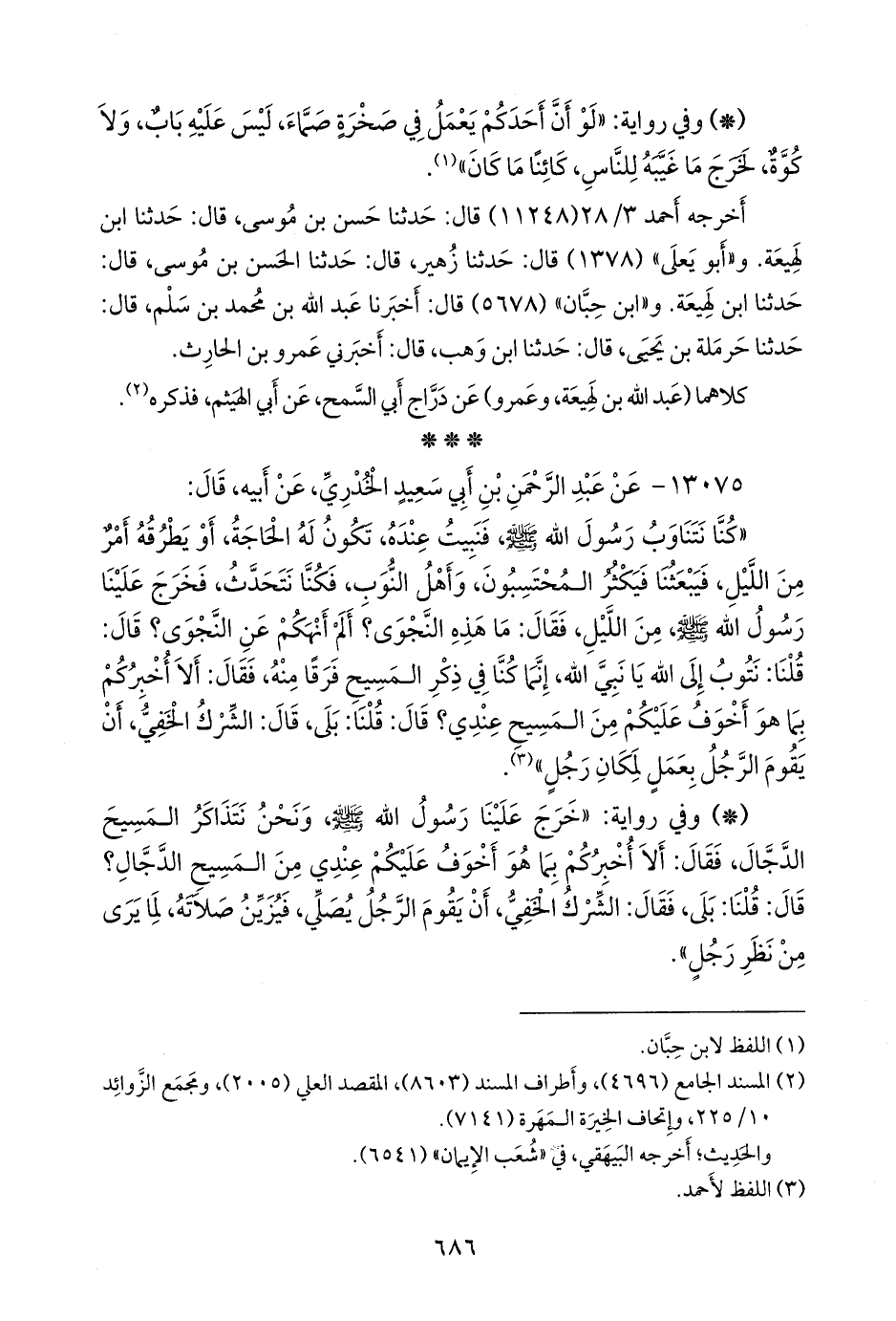 (¬٢) المسند الجامع (٤٢٠٤ و ٤٥٢٤)، وتحفة الأشراف (٤١٢٩)، وأطراف المسند (٨٢٩٧)، ومَجمَع الزوائد ١/ ٣١٥ و ٩/ ٢٢، وإتحاف الخِيرَة المَهَرة (٣٩٩ و ٥٥٧٤).