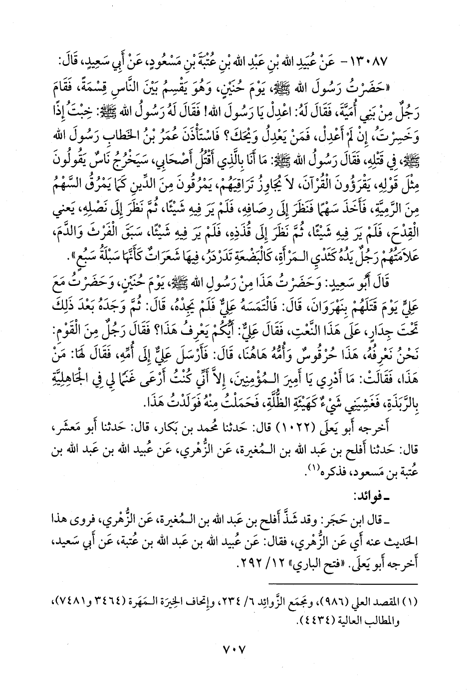 - قال ابن حجر: وقد شذ أفلح بن عبد الله بن المغيرة، عن الزُّهْري، فروى هذا الحديث عنه أي عن الزُّهْري، فقال: عن عُبيد الله بن عبد الله بن عُتبة، عن أبي سعيد، أخرجه أَبو يَعلى. «فتح الباري» ١٢/ ٢٩٢.