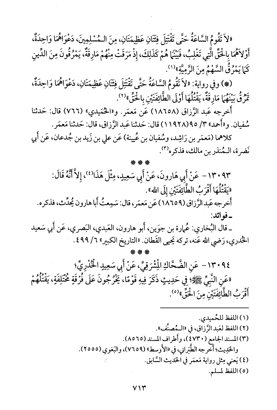 «عن النبي صَلى الله عَليه وسَلم؛ في حديث ذكر فيه قوما، يخرجون على فرقة مختلفة، يقتلهم أقرب الطائفتين من الحق» (¬١).