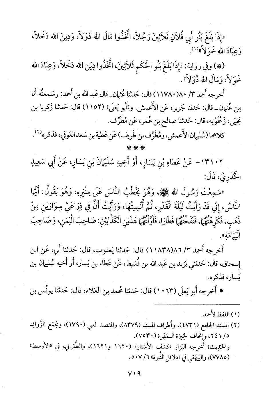 (¬١) المسند الجامع (٤٥٧٣)، وأطراف المسند (٨٣٤١)، ومَجمَع الزوائد ٧/ ١٨١.
