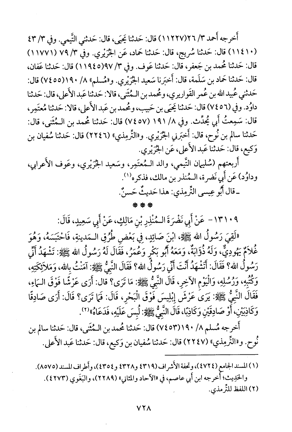 (¬٢) المسند الجامع (٤٧٢٥)، وتحفة الأشراف (٤٣٢٩).