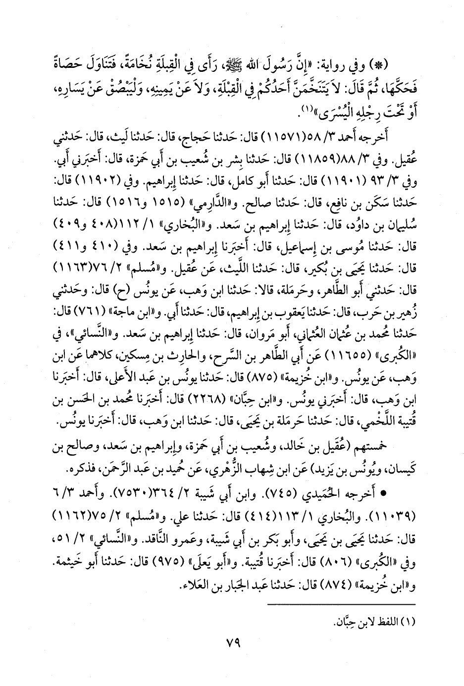 و «مسلم» ٢/ ٧٦ (١١٦٣) قال: حدثني أَبو الطاهر، وحَرملة، قالا: حدثنا ابن وهب، عن يونس (ح) قال: وحدثني زهير بن حرب، قال: حدثنا يعقوب بن إبراهيم، قال: حدثنا أبي. و «ابن ماجة» (٧٦١) قال: حدثنا محمد بن عثمان العثماني، أَبو مروان، قال: حدثنا إبراهيم بن سعد. و «النَّسَائي» في «الكبرى» (١١٦٥٥) عن أبي الطاهر بن السَّرح، والحارث بن مسكين، كلاهما عن ابن وهب، عن يونس. و «ابن خزيمة» (٨٧٥) قال: حدثنا يونس بن عبد الأعلى، قال: أخبرنا ابن وهب، قال: أخبرني يونس. و «ابن حِبَّان» (٢٢٦٨) قال: أخبرنا محمد بن الحسن بن قتيبة اللخمي، قال: حدثنا حَرملة بن يحيى، قال: حدثنا ابن وهب، قال: أخبرنا يونس.