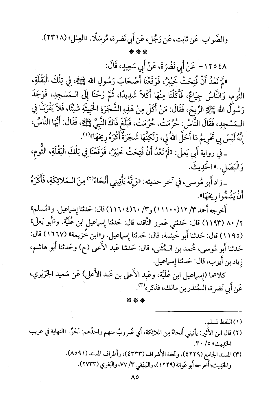 كلاهما (إسماعيل ابن عُلَية، وعبد الأعلى بن عبد الأعلى) عن سعيد الجُريري، عن أبي نضرة المنذر بن مالك، فذكره (¬٣).