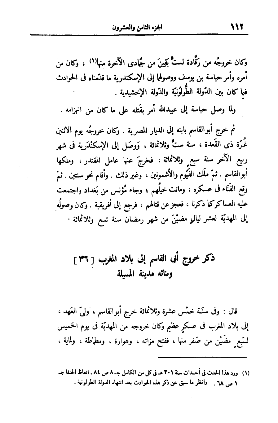 ذكر خروج أبى القاسم إلى بلاد المغرب [36] وبنائه مدينة المسيلة