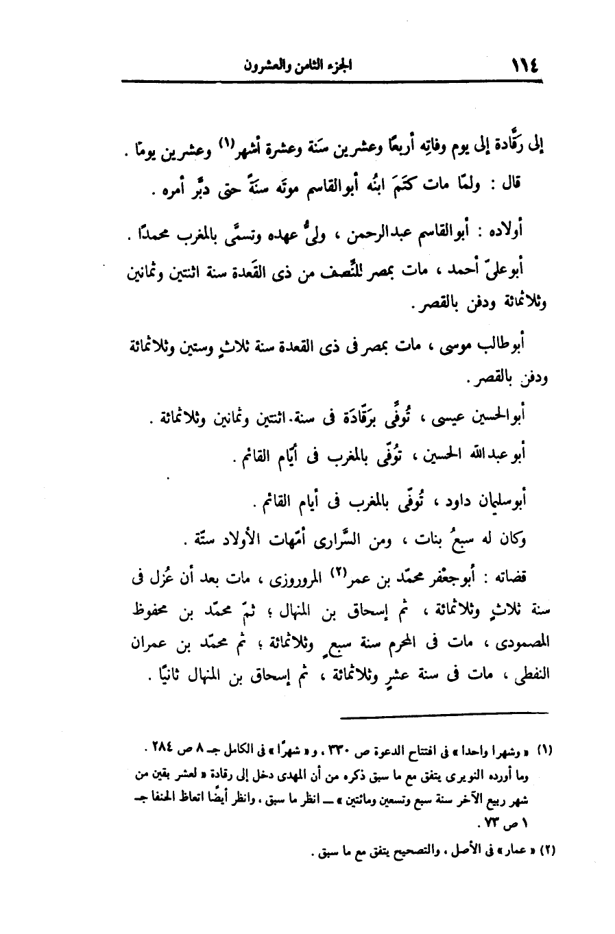 إلى رقّادة إلى يوم وفاته أربعا وعشرين سنة وعشرة أشهر «1» وعشرين يوما.