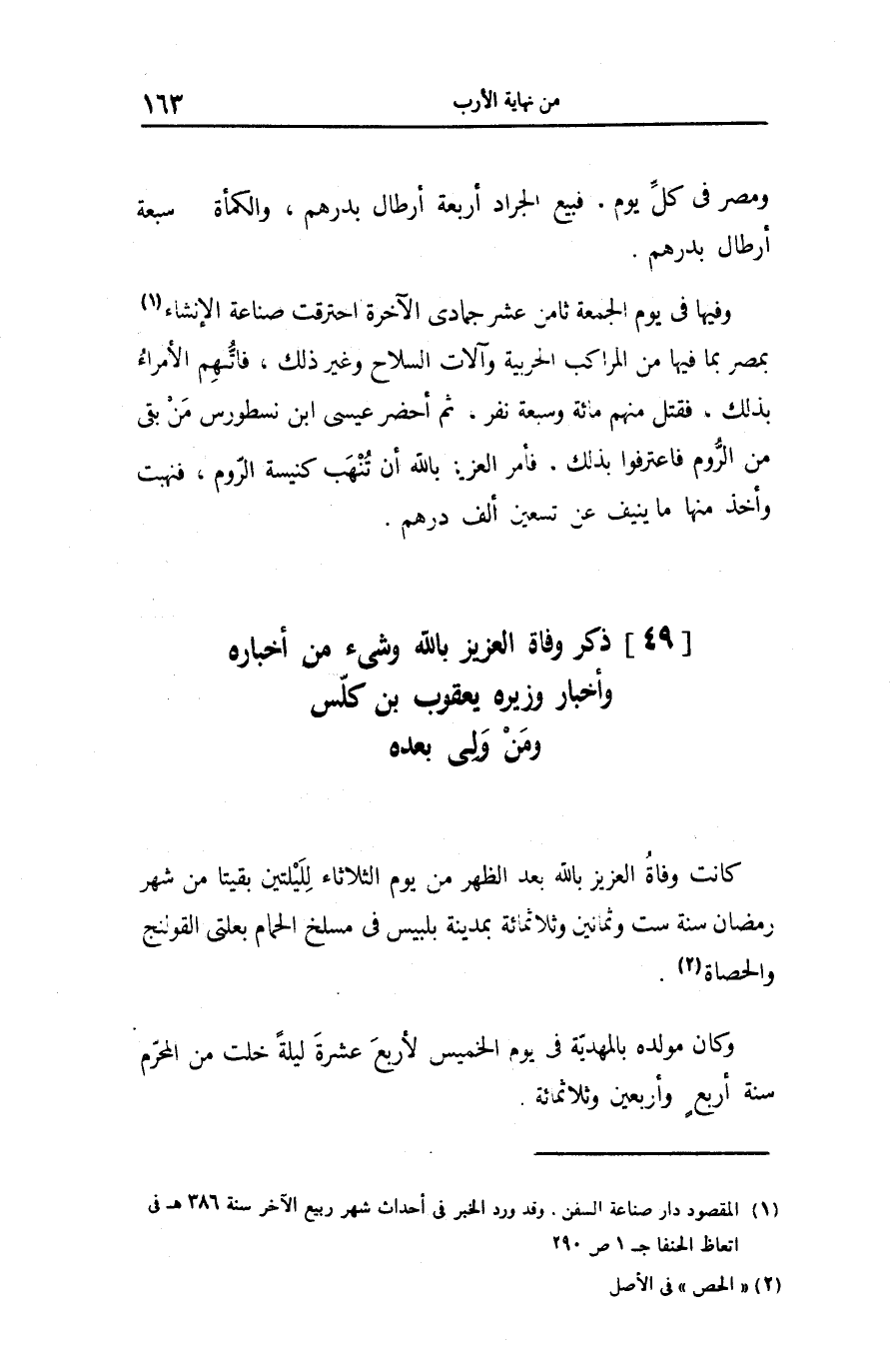 [49] ذكر وفاة العزيز بالله وشىء من أخباره وأخبار وزيره يعقوب بن كلّس ومن ولى بعده